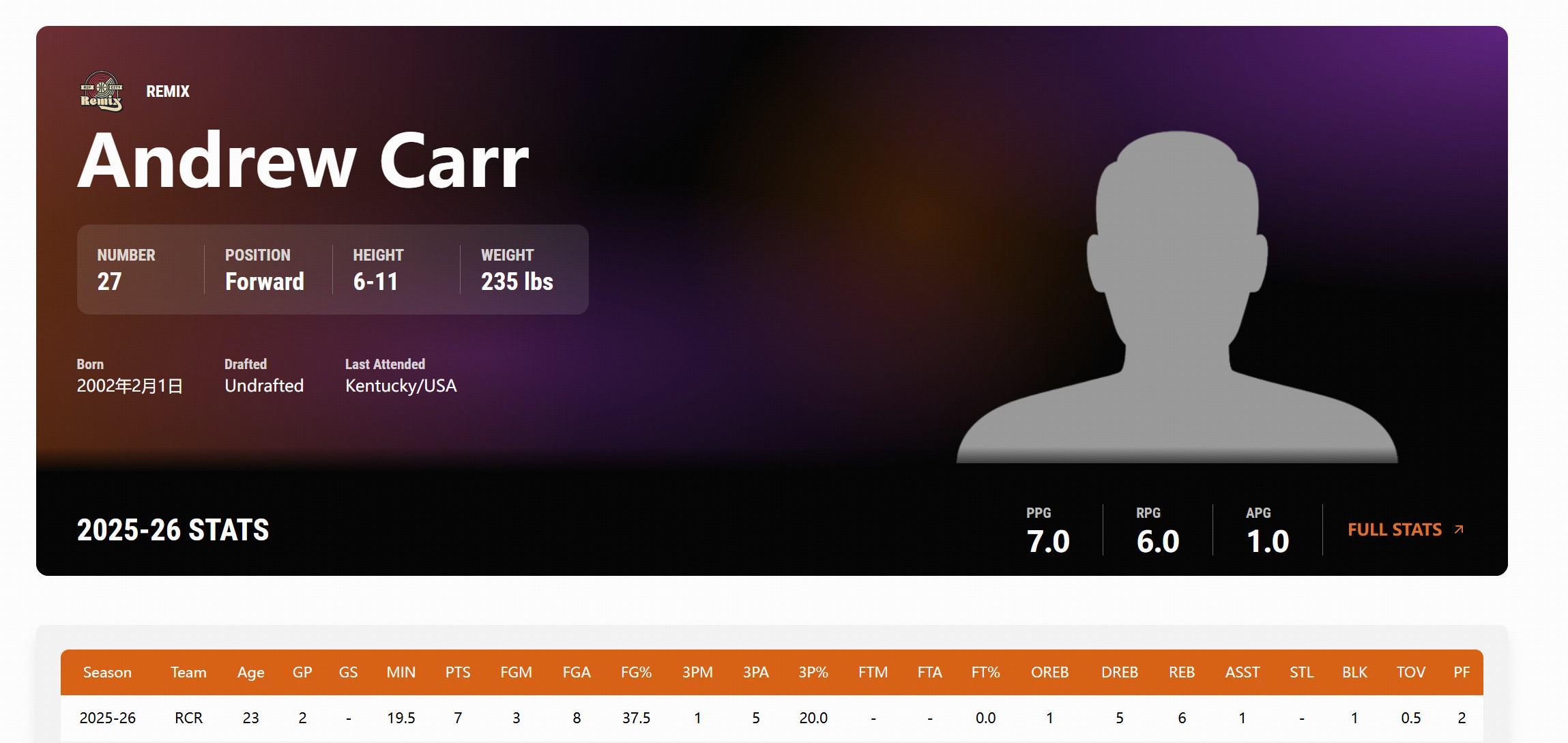 球隊(duì)的內(nèi)線(xiàn)方面,身高2米13的羅賓斯和身高2米08的空間型內(nèi)線(xiàn)安德魯-卡爾是球隊(duì)的主要輪換。但從出場(chǎng)時(shí)間能看出來(lái),混音隊(duì)的大部分時(shí)間也是在打小個(gè)陣容,這兩位中鋒的平均出場(chǎng)時(shí)間也僅在20分鐘左右。