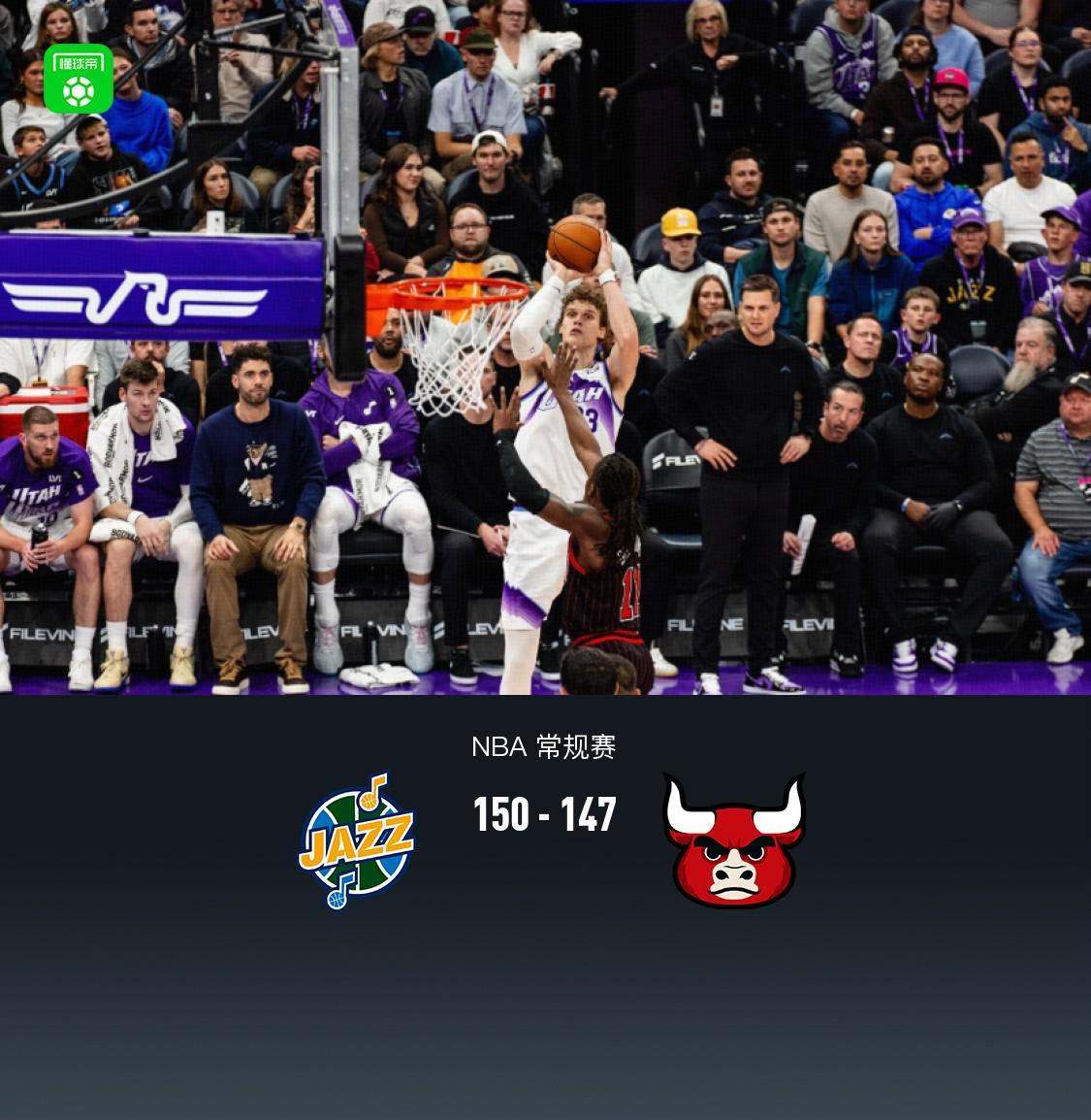 加時(shí)賽爵士基揚(yáng)特-喬治拿下12分,公牛科比-懷特拿下8分,最終爵士150-147戰(zhàn)勝公牛