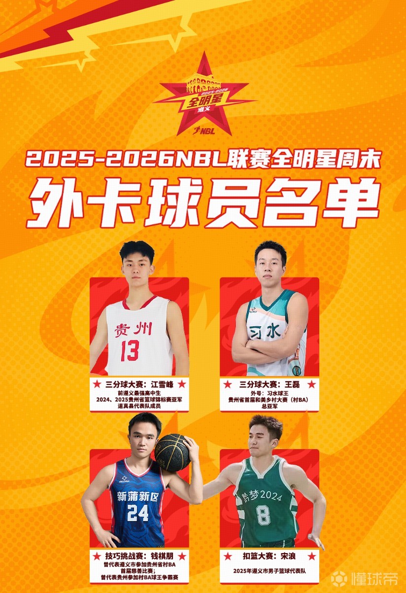NBL官方公布2025-26賽季全明星正賽、單項(xiàng)賽名單。上海玄鳥(niǎo)球員賴益燁雖然本賽季因傷未參加任何比賽,但替補(bǔ)入選正賽大名單。