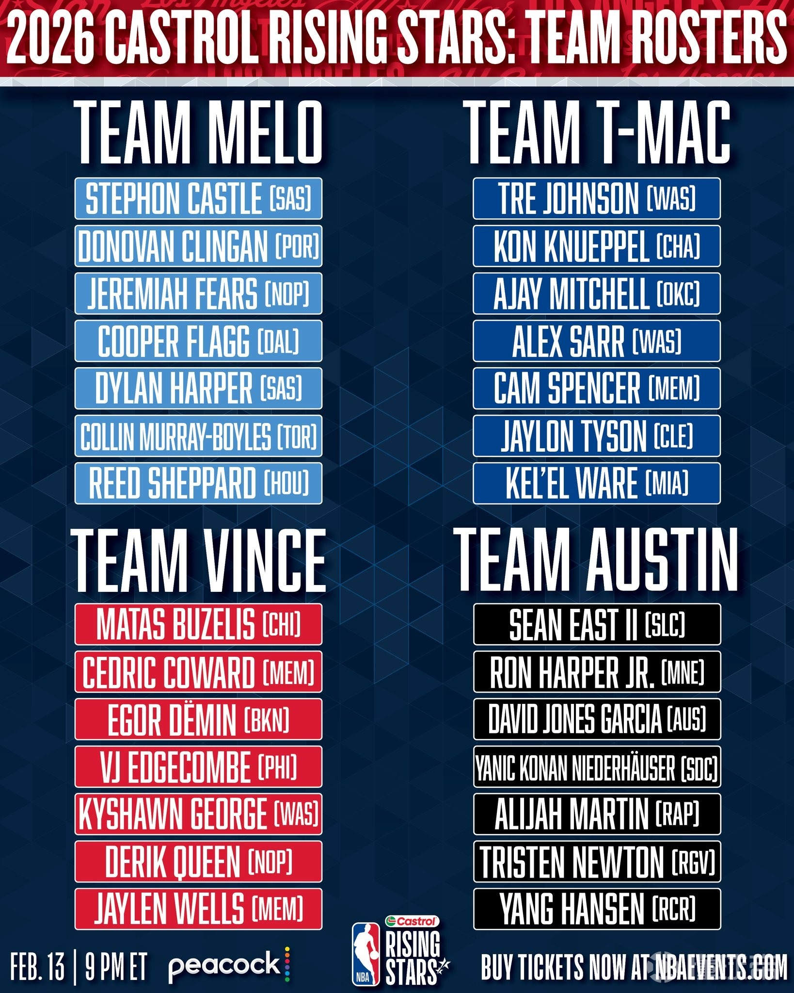北京時間1月31日,NBA官方公布了2026年全明星新秀賽的對陣形勢,楊瀚森所在的G聯(lián)賽隊將對陣由擁有弗拉格和克林根并由卡梅隆-安東尼掛帥的Team Melo。