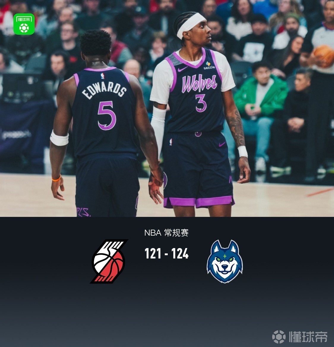 北京時間2月25日NBA 常規(guī)賽,波特蘭開拓者對陣明尼蘇達(dá)森林狼。本場楊瀚森繼續(xù)沒有隨隊出戰(zhàn),森林狼多次將分差拉大至兩位數(shù),開拓者極為頑強多次追近比分,半場開拓者59-62森林狼,最終開拓者121-124森林狼。