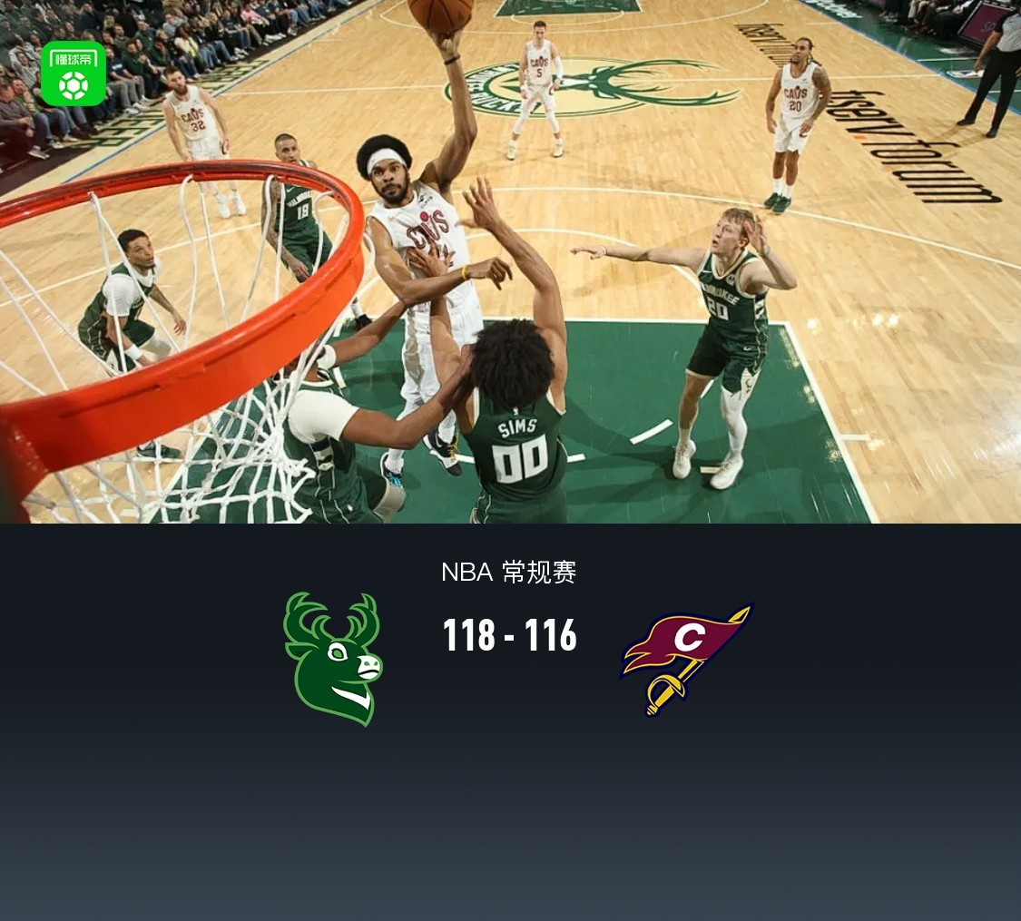 第四節(jié)雄鹿西姆斯拿下7分,騎士艾倫拿下7分,最終雄鹿118-116戰(zhàn)勝騎士