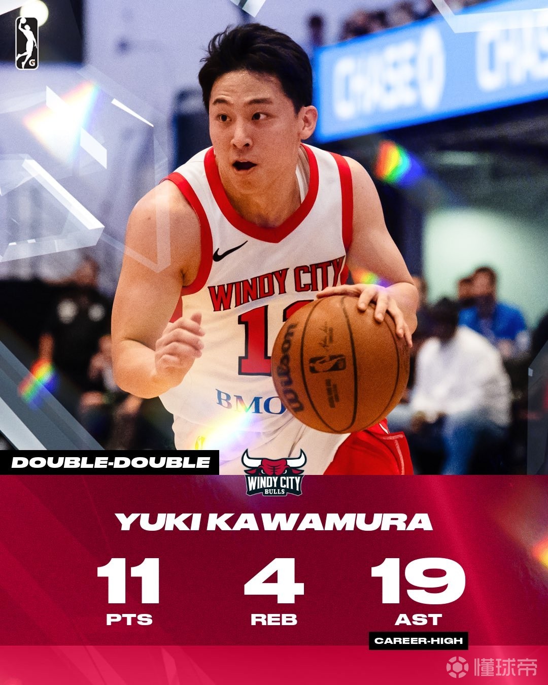 雙向合同球員河村勇輝在本賽季G聯(lián)賽場均可以送出11.3次助攻。
