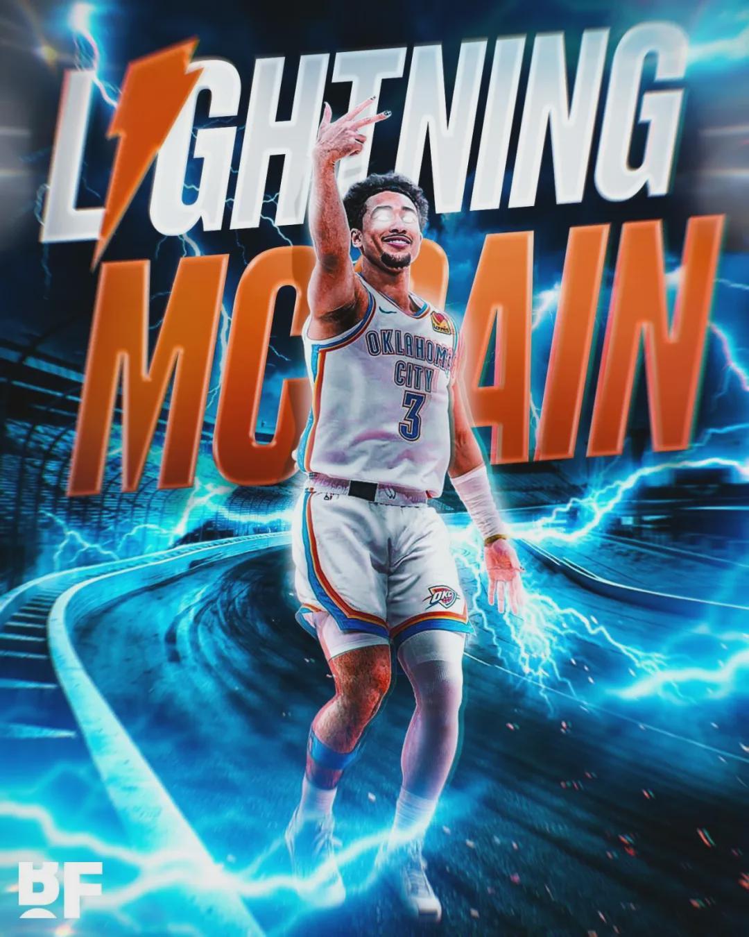 雷霆新援賈里德-麥凱恩(魔仙哥)替補(bǔ)出戰(zhàn)25分鐘,投籃15中8,三分9中4,得到20分3籃板1助攻2搶斷2失誤。自從加盟雷霆之后,麥凱恩3次替補(bǔ)砍下20+,同期聯(lián)盟替補(bǔ)球員第二多,僅次于凱爾特人后衛(wèi)普里查德(6次)。