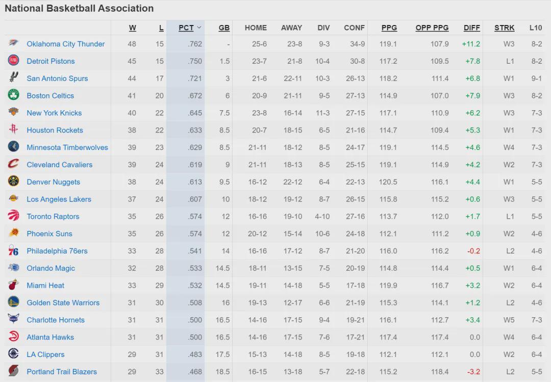 北京時間3月4日,NBA常規(guī)賽:雷霆116-108戰(zhàn)勝公牛,活塞109-113不敵騎士。截至目前,雷霆48勝15負(fù)重返聯(lián)盟第一,活塞45勝15負(fù)跌至聯(lián)盟第二。雷霆被活塞壓制了20天,現(xiàn)在終于登頂了。馬刺44勝17負(fù),依然位列聯(lián)盟第三。