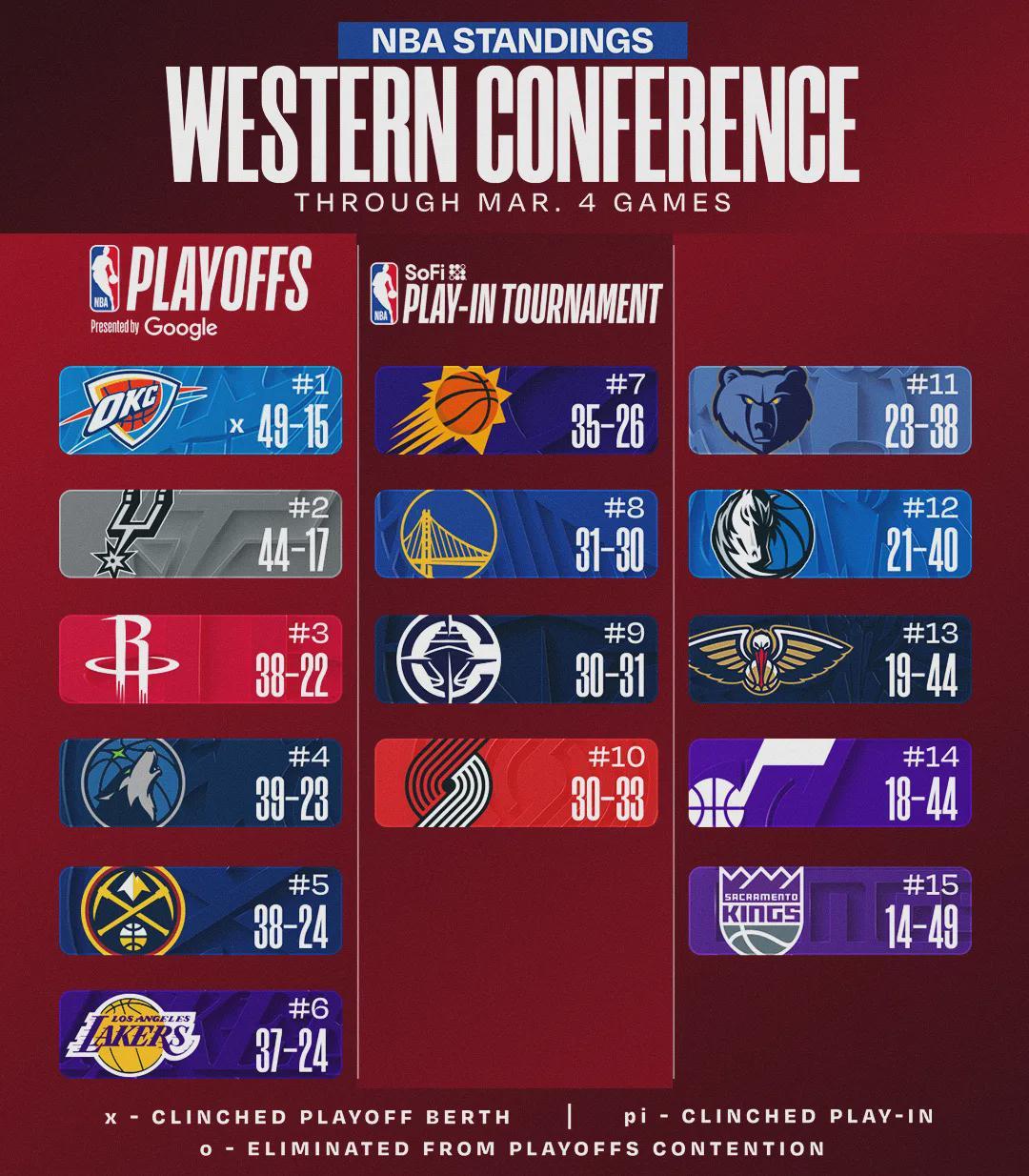 最后看看西部排名,你覺得哪兩支球隊能會師西決?