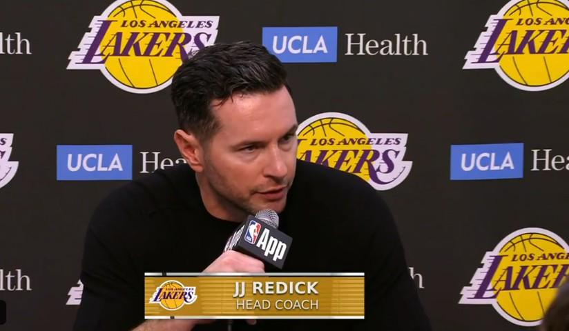 比賽最后時刻,湖人曾因狄龍-布魯克斯撞擊詹姆斯而獲得1次技術(shù)罰球,最終詹姆斯執(zhí)行了這次關(guān)鍵的罰球但沒有命中。賽后,湖人主帥雷迪克接受了采訪談到了這一回合。