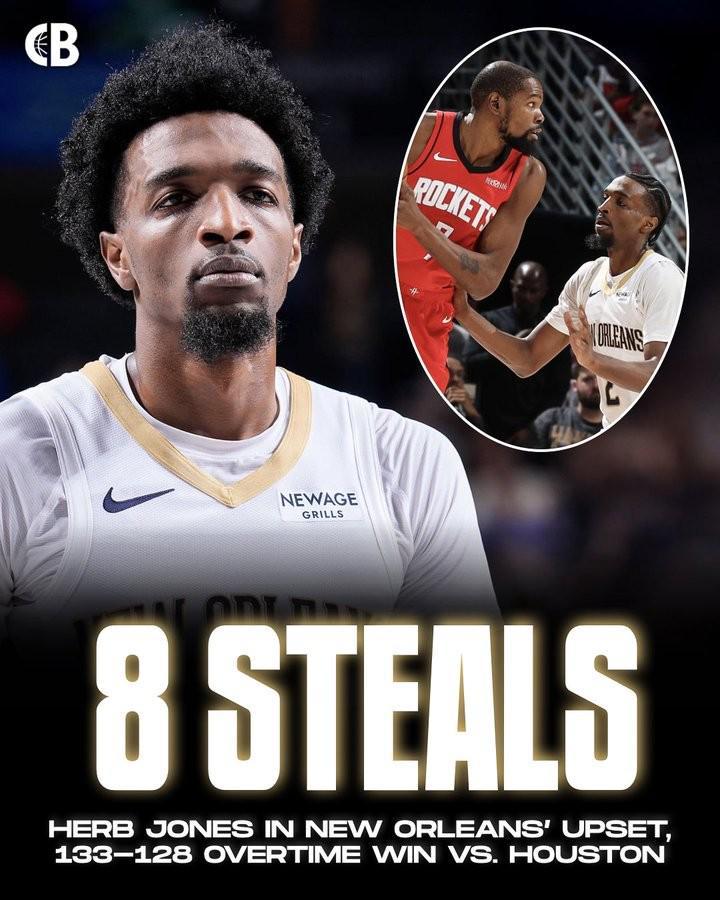 據(jù)統(tǒng)計(jì),8次搶斷是瓊斯職業(yè)生涯的單場(chǎng)搶斷數(shù)新高,他也憑借著強(qiáng)悍的防守表現(xiàn)幫助鵜鶘完成超級(jí)逆轉(zhuǎn)。