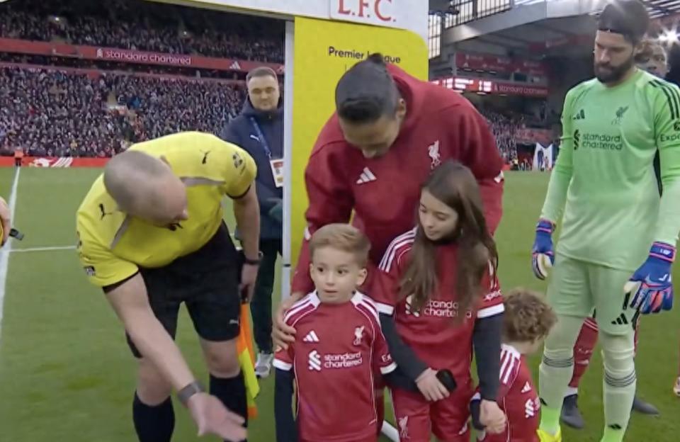 安菲爾德感人一幕!若塔幼子擔(dān)任球童,裁判躬身?yè)粽疲阌啦华?dú)行