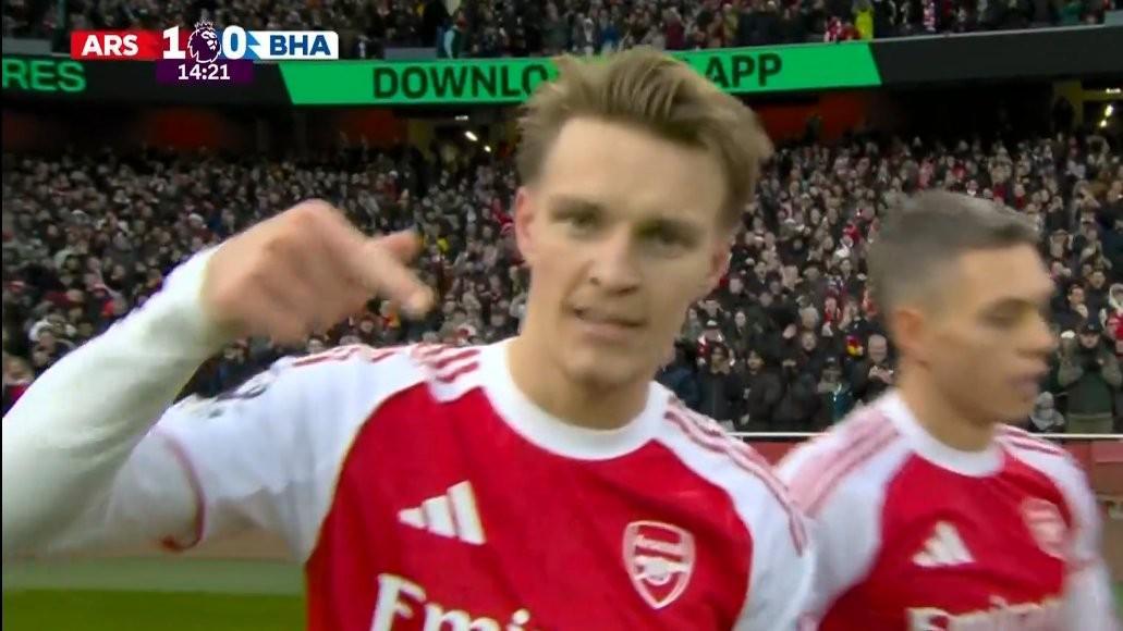遠(yuǎn)射破門(mén),厄德高斬獲本賽季在阿森納的首粒進(jìn)球