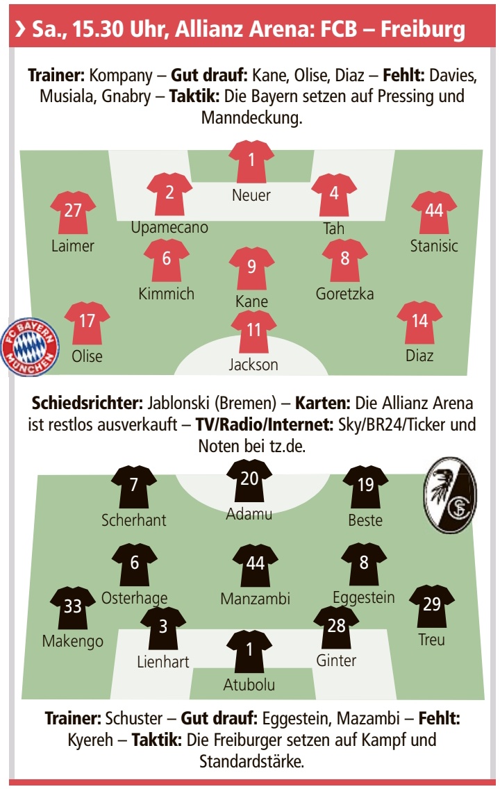 雷速體育11月21日訊 北京時(shí)間周六晚,德甲第11輪弗賴堡客場對陣拜仁慕尼黑。