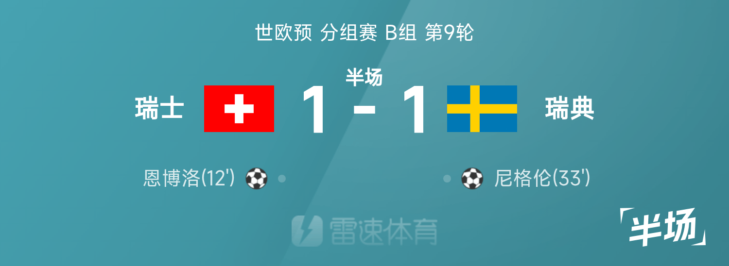 雷速體育11月16日訊 26賽季世歐預(yù)分組賽B組第9輪,瑞士迎戰(zhàn)瑞典。