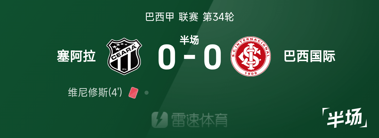 雷速體育11月21日訊 25賽季巴西甲聯(lián)賽第34輪,巴西國際2-1戰(zhàn)勝塞阿拉。