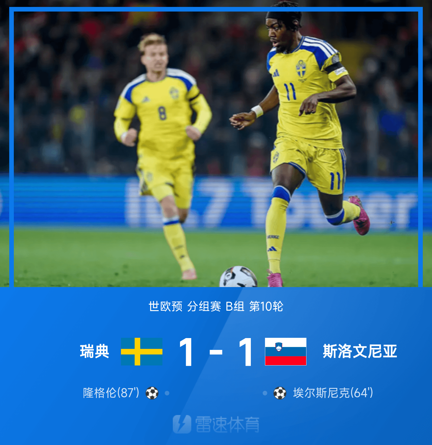世歐預(yù)戰(zhàn)報:隆格倫抽射準(zhǔn)絕平,瑞典1-1斯洛文尼亞