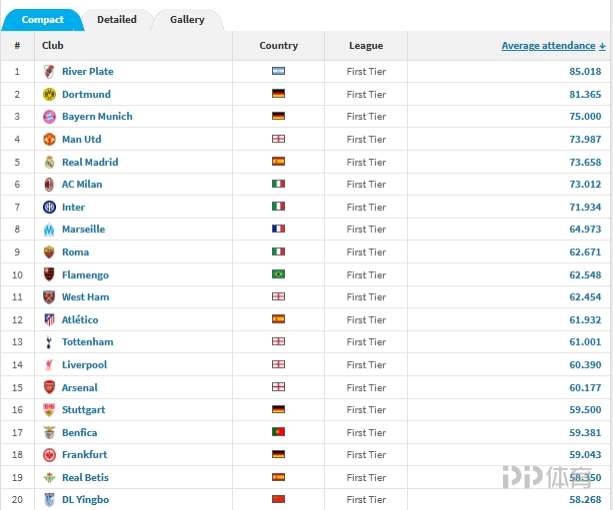 2025年全球頂級(jí)聯(lián)賽場(chǎng)均觀眾:河床居首 大連英博第20