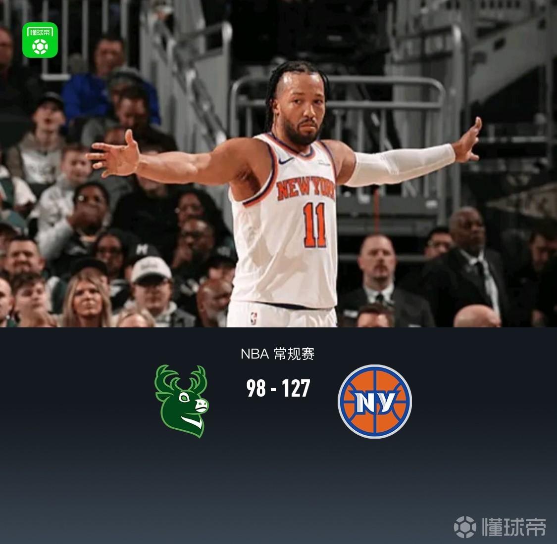 尼克斯7人上雙127-98大勝雄鹿,布倫森27+7,唐斯17+13