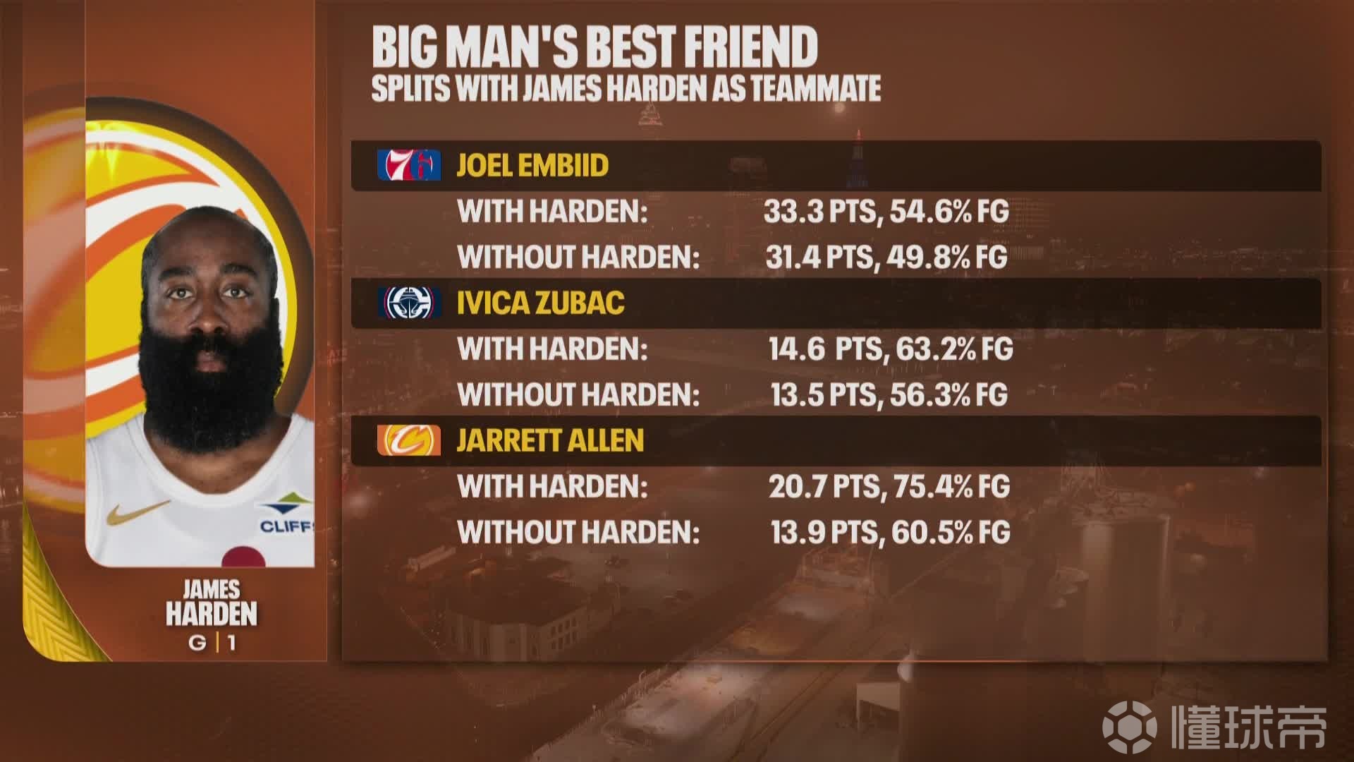 中鋒的“奶媽”,美媒曬三大中鋒數(shù)據(jù),與哈登做隊(duì)友后全方面提升