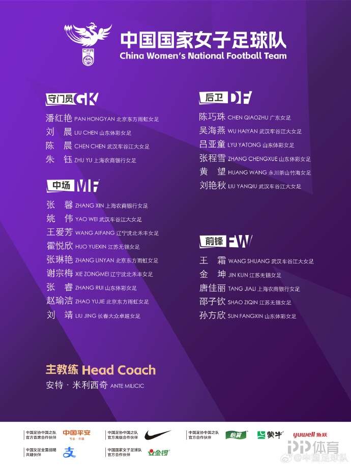 中國女足新一期名單:王霜領(lǐng)銜 主帥仍是米利西奇