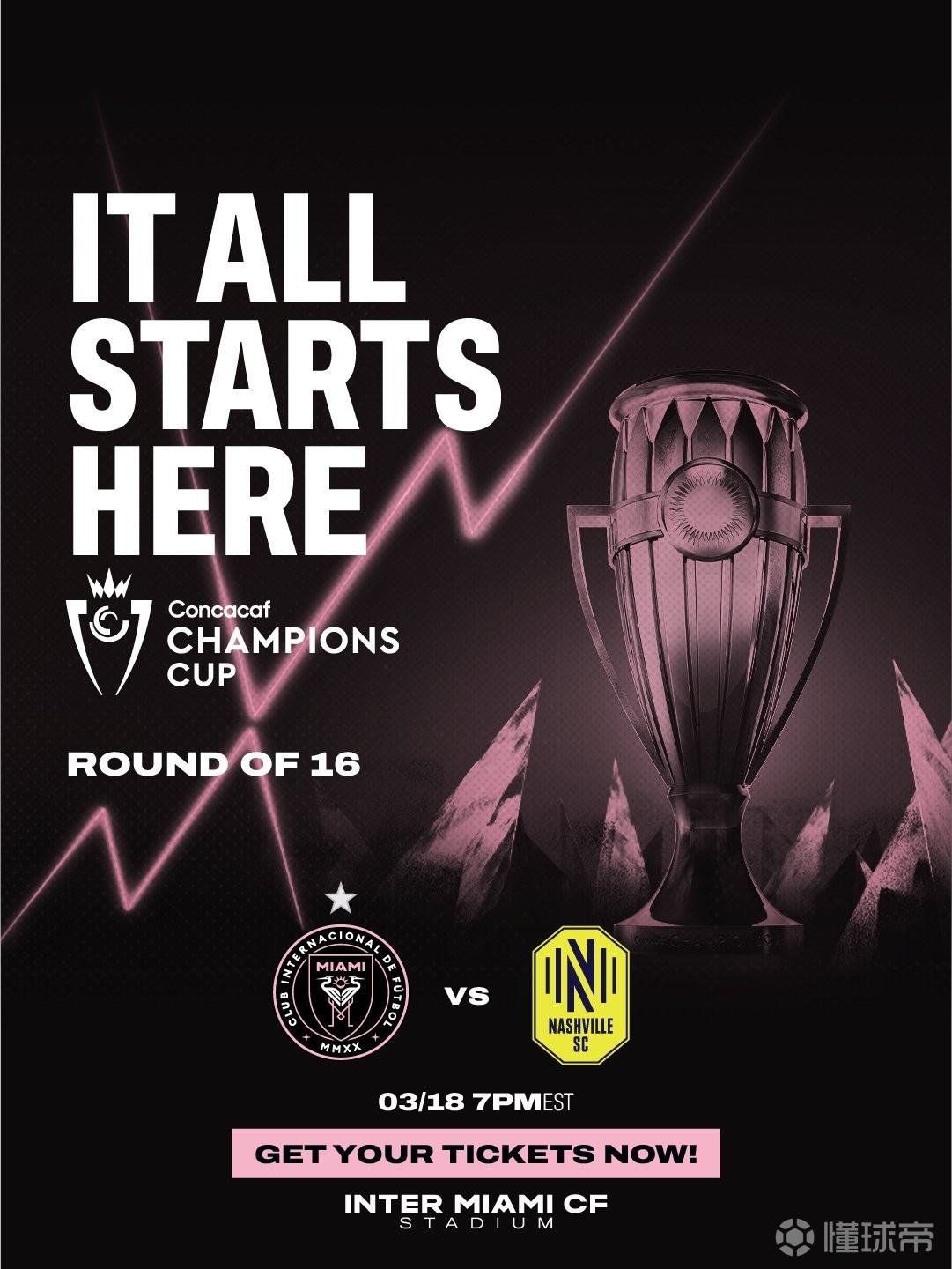 官方:美冠杯1/8決賽次回合邁阿密vs納什維爾將于3月19日開球