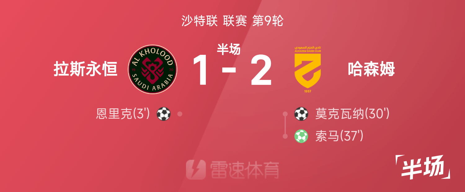 雷速體育11月22日訊 25/26賽季沙特聯(lián)聯(lián)賽第9輪,拉斯永恒坐鎮(zhèn)主場(chǎng)迎戰(zhàn)哈森姆。