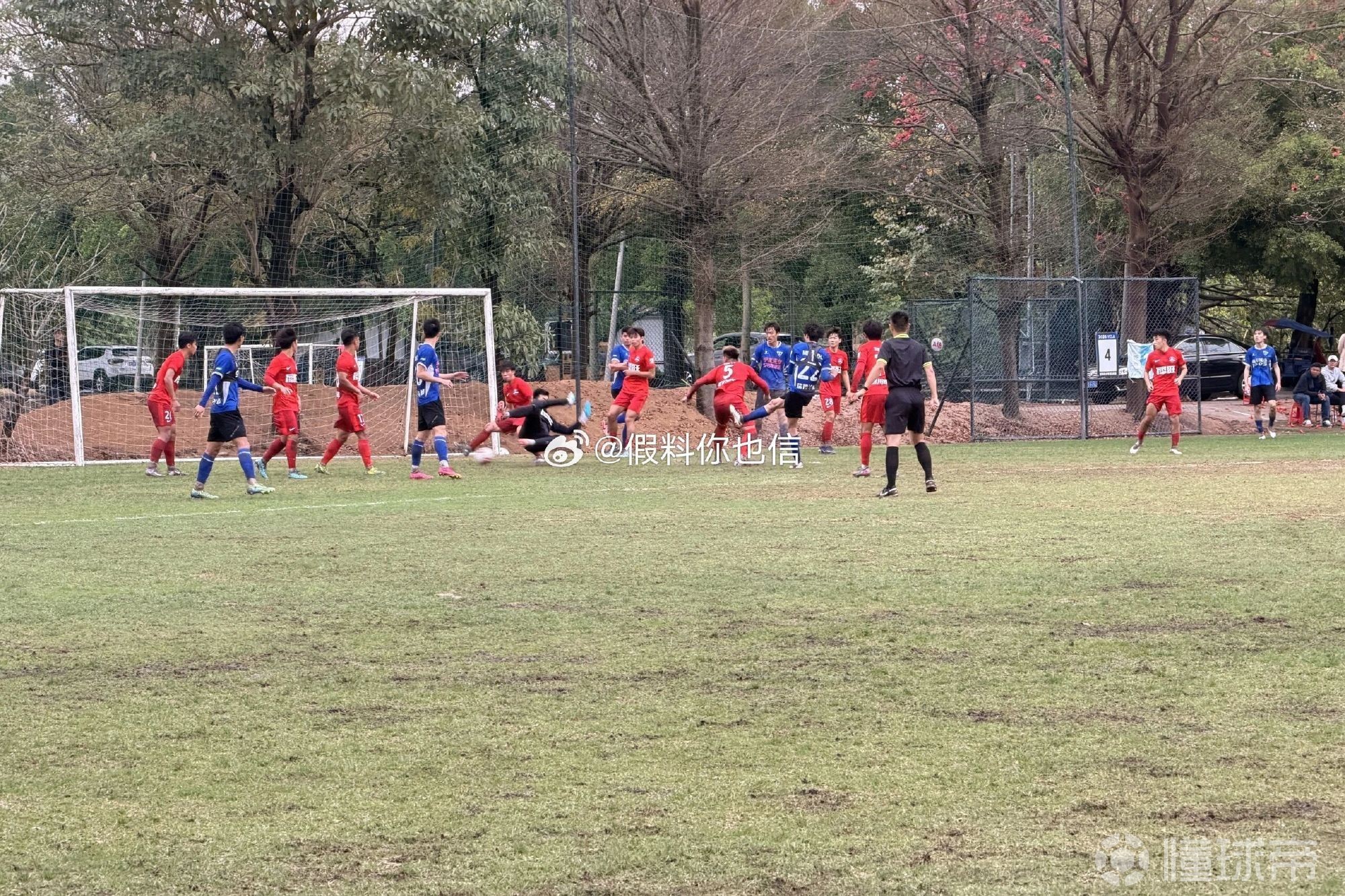 接地氣,重慶球迷趴在草地上透過圍欄縫隙觀看銅梁龍熱身賽