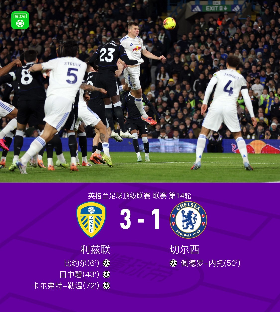 足球視頻觀看欣賞:12月04日 英超第14輪 利茲聯(lián)vs切爾西 全場錄像回放