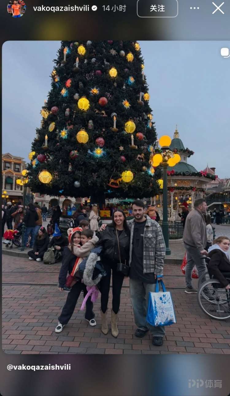 泰山外援瓦科曬巴黎游玩照 一家四口在圣誕樹(shù)前合影