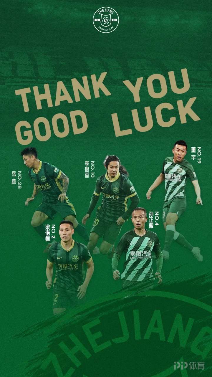 浙江官方:李提香、孫正傲、董宇、岳鑫、梁諾恒合同期滿離隊