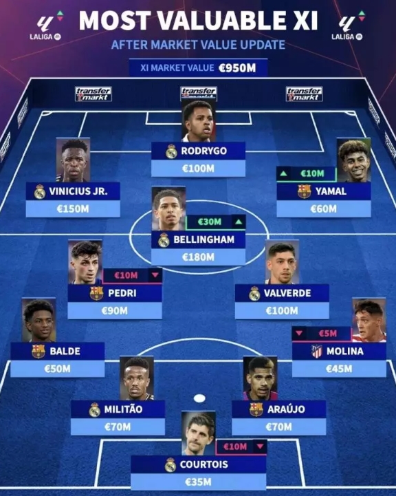 近期,西甲球員身價(jià)更新,一份最新的11人陣容榜單也應(yīng)運(yùn)而生。這支陣容以億萬先生為主,其中不乏皇馬的4位明星球員,他們的身價(jià)令人瞠目結(jié)舌。本文將詳細(xì)解讀這支西甲最貴11人陣容,揭示背后的身價(jià)背書和球