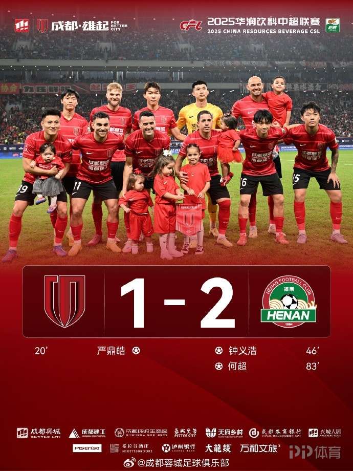 主場(chǎng)遭河南逆轉(zhuǎn),成都蓉城提前一輪無緣本賽季中超冠軍