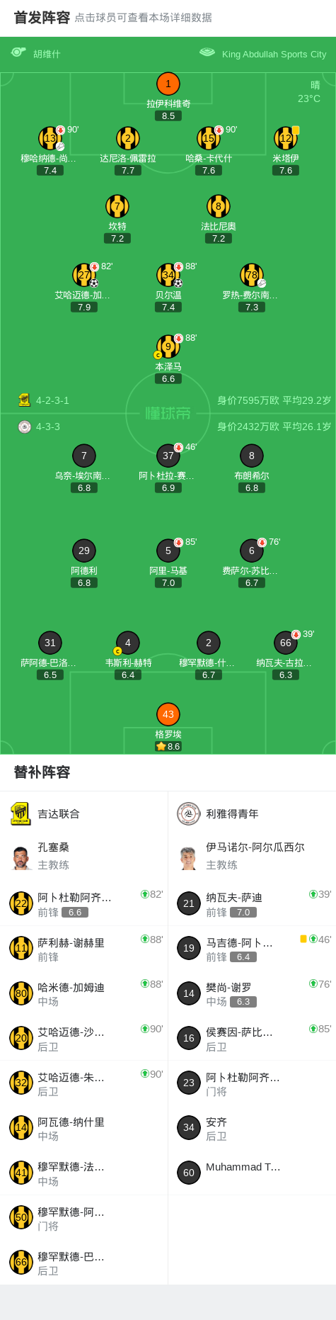 第16分鐘,吉達(dá)聯(lián)合球員羅熱-費(fèi)爾南德斯助攻艾哈邁德-加姆迪打入一球。