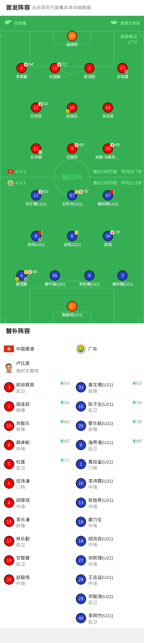北京時(shí)間12月28日,省港杯首回合,中國香港與廣東展開對決。上半場,孫銘謙世界波首開記錄。下半場,廣東憑借陳偉和姜至鵬的進(jìn)球?qū)崿F(xiàn)逆轉(zhuǎn),隨后陳偉吃到第二張黃牌被罰下,艾華頓點(diǎn)射扳平比分,黃梓舜也累計(jì)兩黃被罰下。最終,中國香港2-2戰(zhàn)平九人廣東。