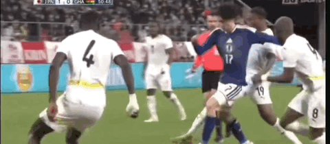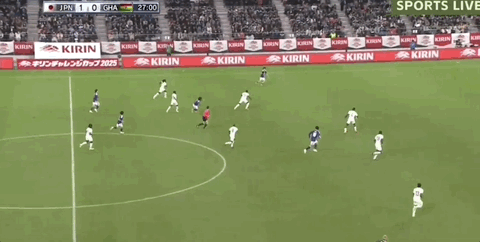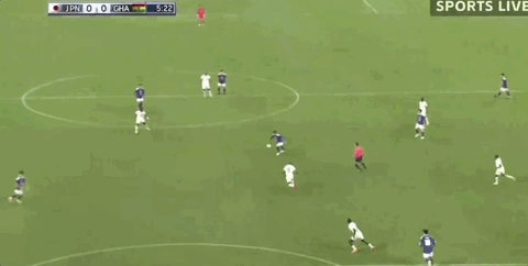第27分鐘,日本邊路打穿加納防線,橫傳中路堂安律中路推射被擋出