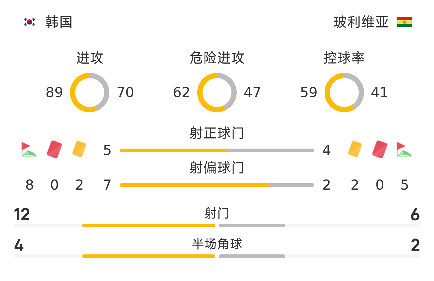 韓國首發(fā)陣容:1-金承奎、2-李明載(76’13-李太錫)、4-金玟哉、15-金紋奐、26-金太炫、10-李在成(60’20-裴峻浩)、11-黃喜燦(76’17-嚴智星)、19-李剛?cè)?85’27-梁民革)、5-元斗才、24-金鎮(zhèn)圭(85’23-卡斯特羅普)、7-孫興慜(76’9-曹圭成)