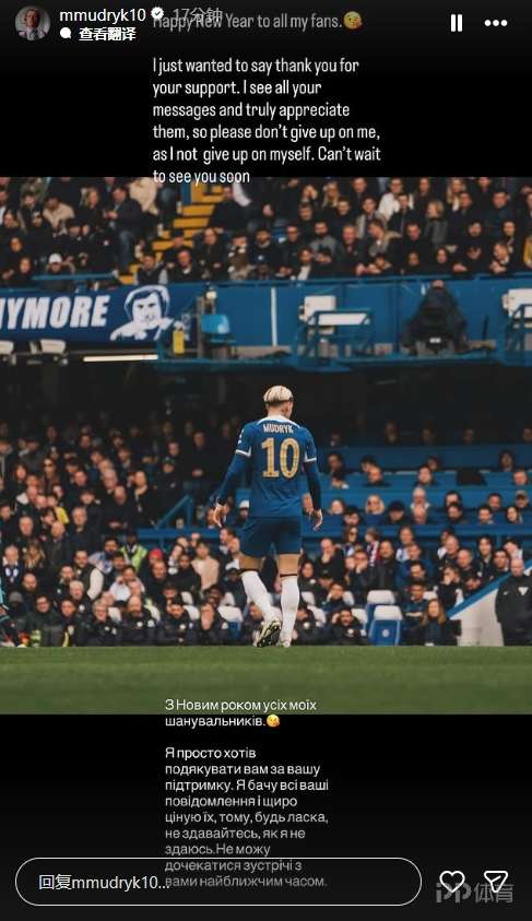 切爾西球員穆德里克發(fā)布社媒,祝賀球迷們新年快樂。