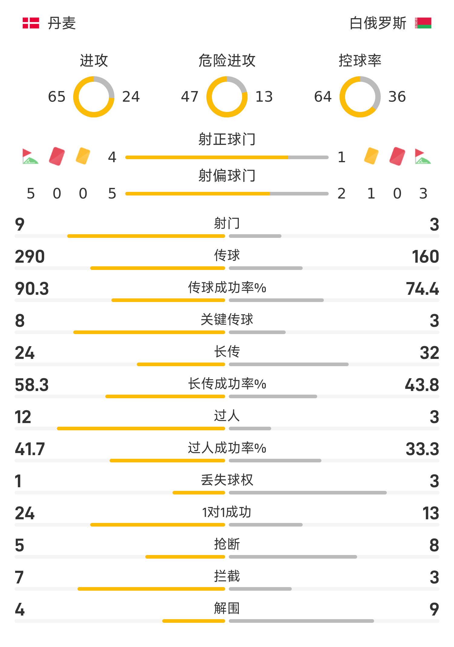 11’達(dá)姆斯高遠(yuǎn)射世界波破門(mén),丹麥1-0白俄羅斯