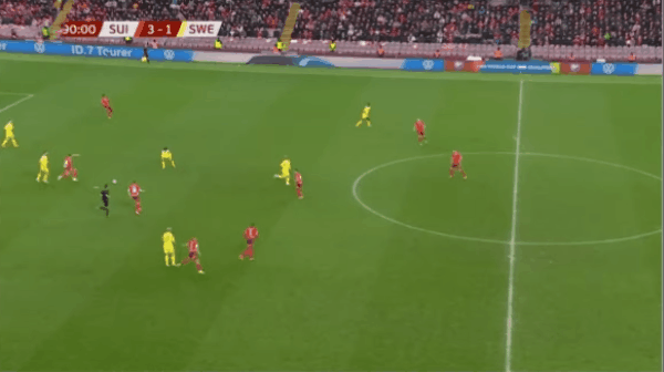 90+4’曼贊比殺入禁區(qū)推射破門(mén),瑞士4-1瑞典