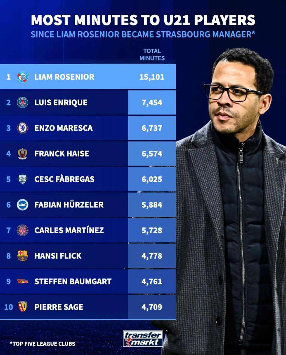 北京時(shí)間1月6日,在切爾西官宣羅塞尼爾成為球隊(duì)新任主帥之后,來自德轉(zhuǎn)的統(tǒng)計(jì)指出,自2024年7月羅塞尼爾開始執(zhí)教斯特拉斯堡以來,這位現(xiàn)年41歲的英格蘭教頭是歐洲五大聯(lián)賽俱樂部中給予U21球員最多出場(chǎng)時(shí)間的主教練。