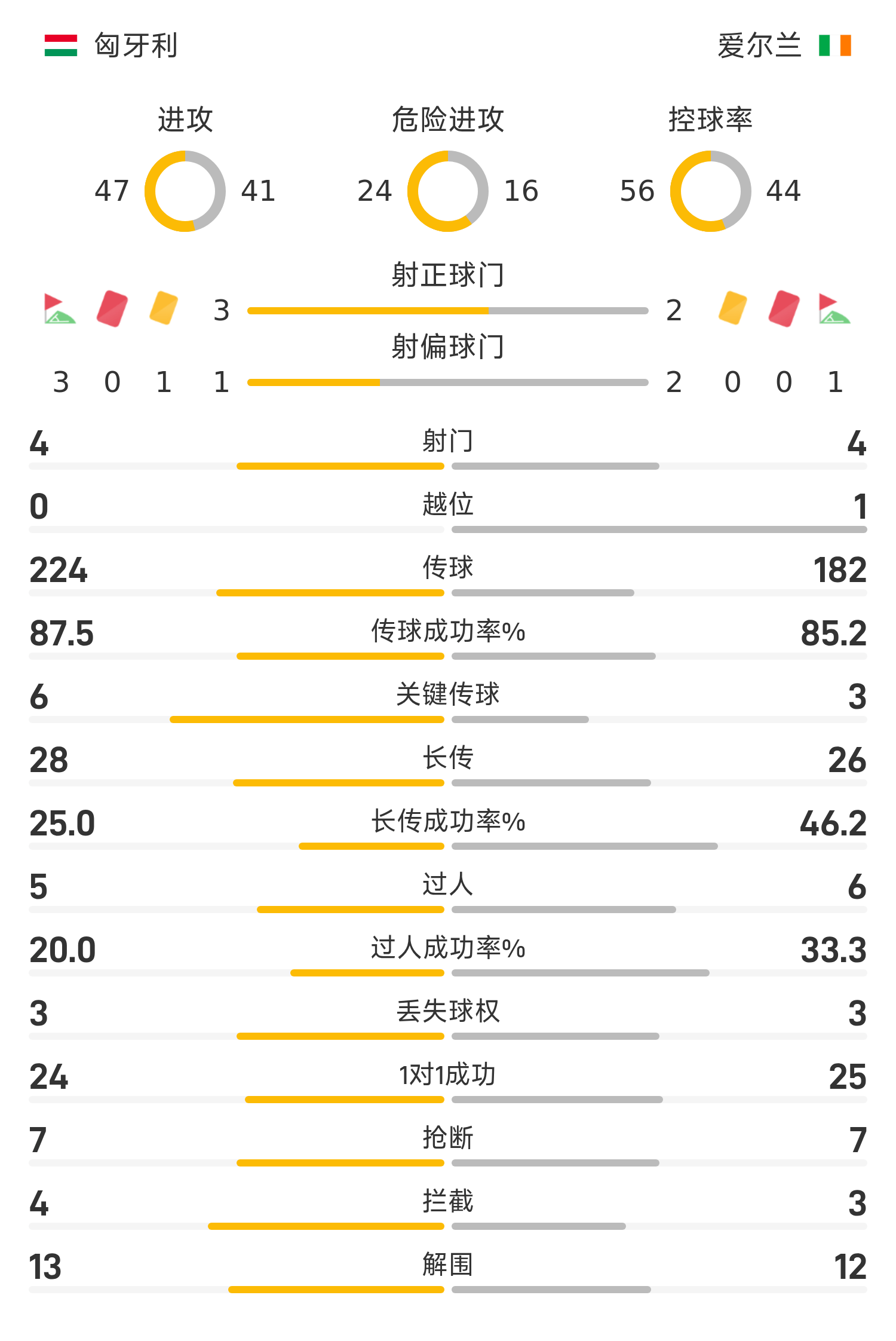 愛爾蘭首發(fā)陣容:1-凱萊赫、4-奧謝、22-柯林斯、5-奧布萊恩、2-科爾曼、6-卡倫、8-莫隆比、20-奧貝恩、3-斯凱爾斯、11-阿扎茲、7-帕洛特