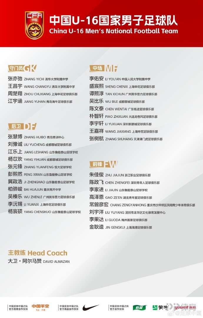 U16國(guó)足集訓(xùn)名單:樸智軒、李佑安在列 阿爾馬贊掛帥