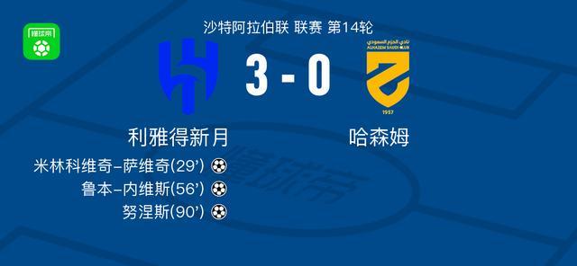 利雅得新月3-0大勝哈森姆,努涅斯破門,魯本-內(nèi)維斯1傳1射