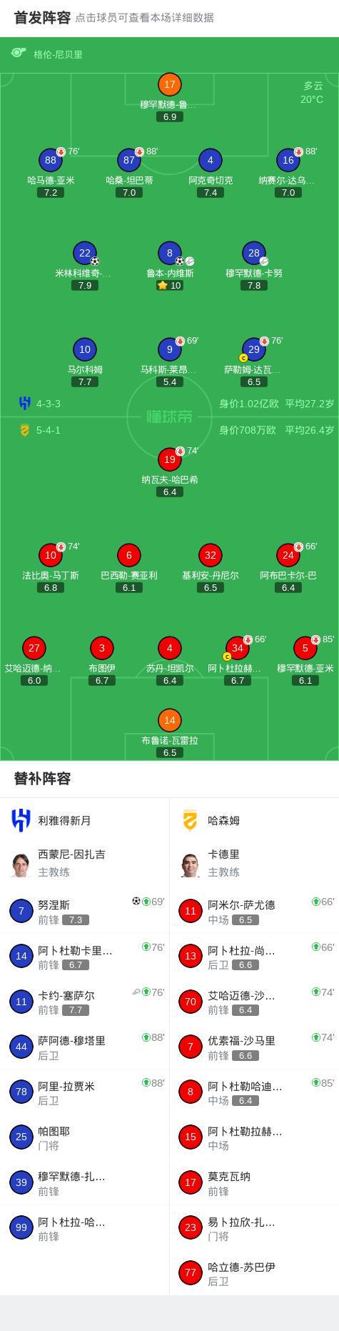 第56分鐘,利雅得新月球員穆罕默德-卡努助攻魯本-內(nèi)維斯打入一球。