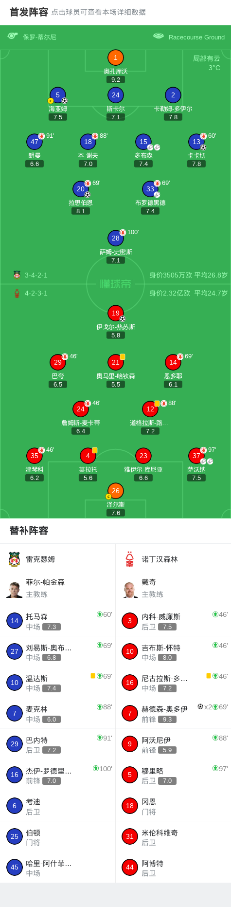 足總杯森林總分6-7遭雷克瑟姆點殺淘汰,熱蘇斯、哈欽森失點