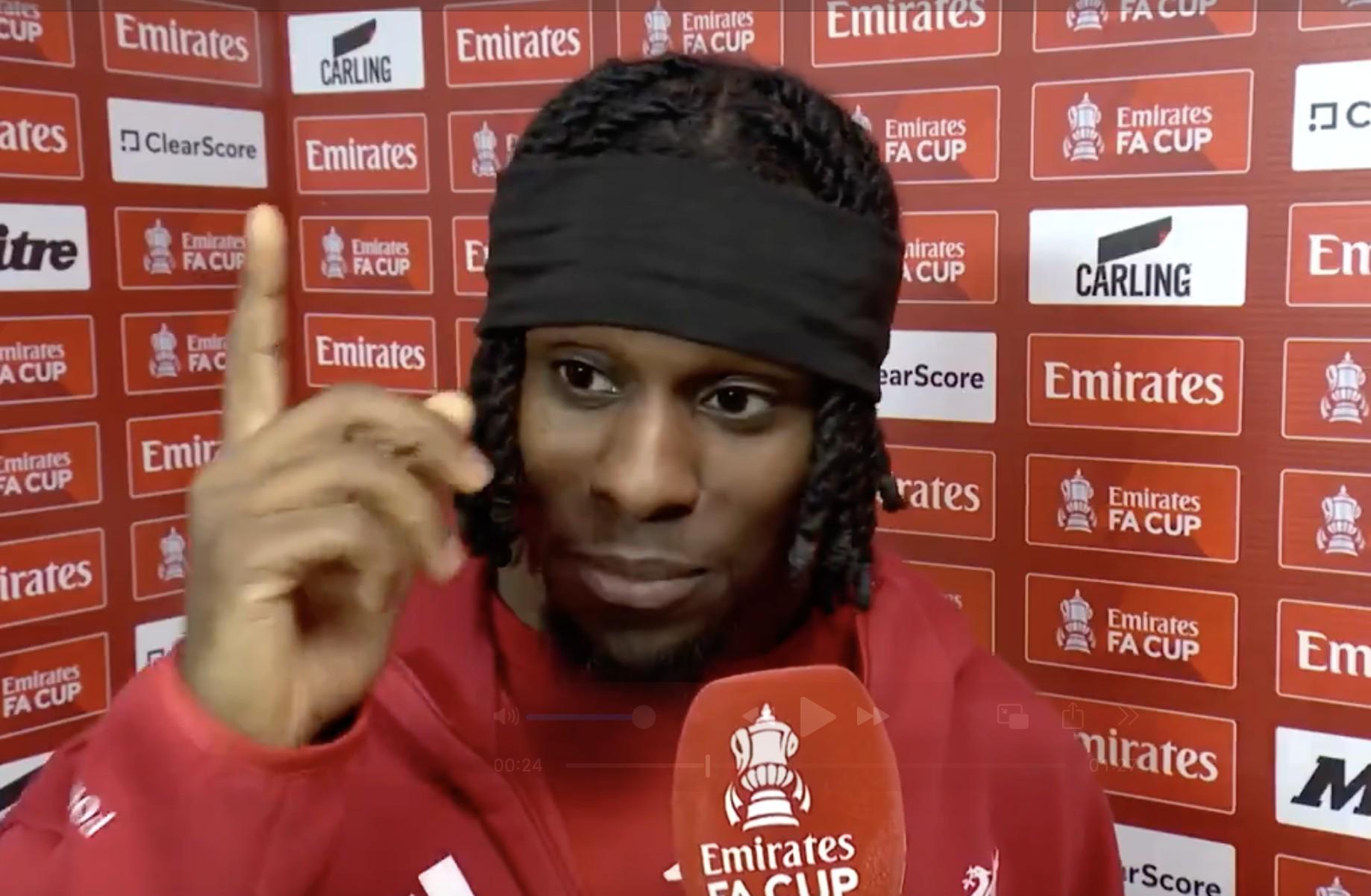 足總杯第三輪,利物浦主場4-1擊敗巴恩斯利,此役打入一球的紅軍后衛(wèi)弗林蓬接受了TNT體育的采訪。