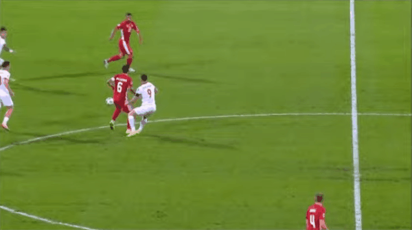 6’吉拉米爾禁區(qū)內(nèi)爭(zhēng)頂時(shí)疑似與波蘭門(mén)將相撞倒地,主裁不予理會(huì)