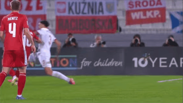 22’扎萊夫斯基反擊中左腳低射遠(yuǎn)角稍稍偏出,波蘭仍0-0馬耳他