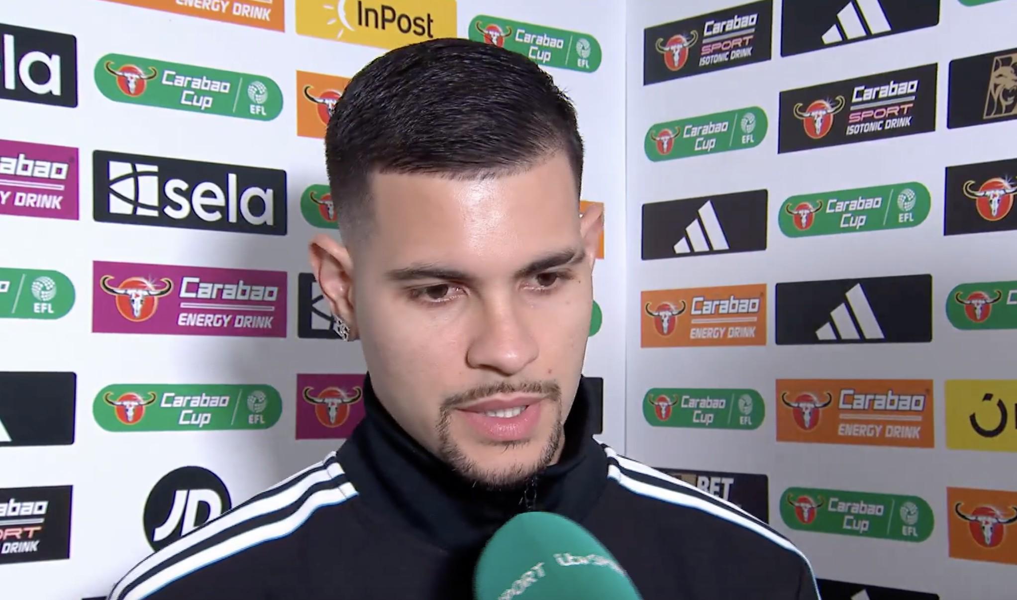 英聯(lián)杯半決賽首回合,紐卡將主場對陣曼城,賽前,紐卡中場吉馬良斯接受了ITV的采訪。