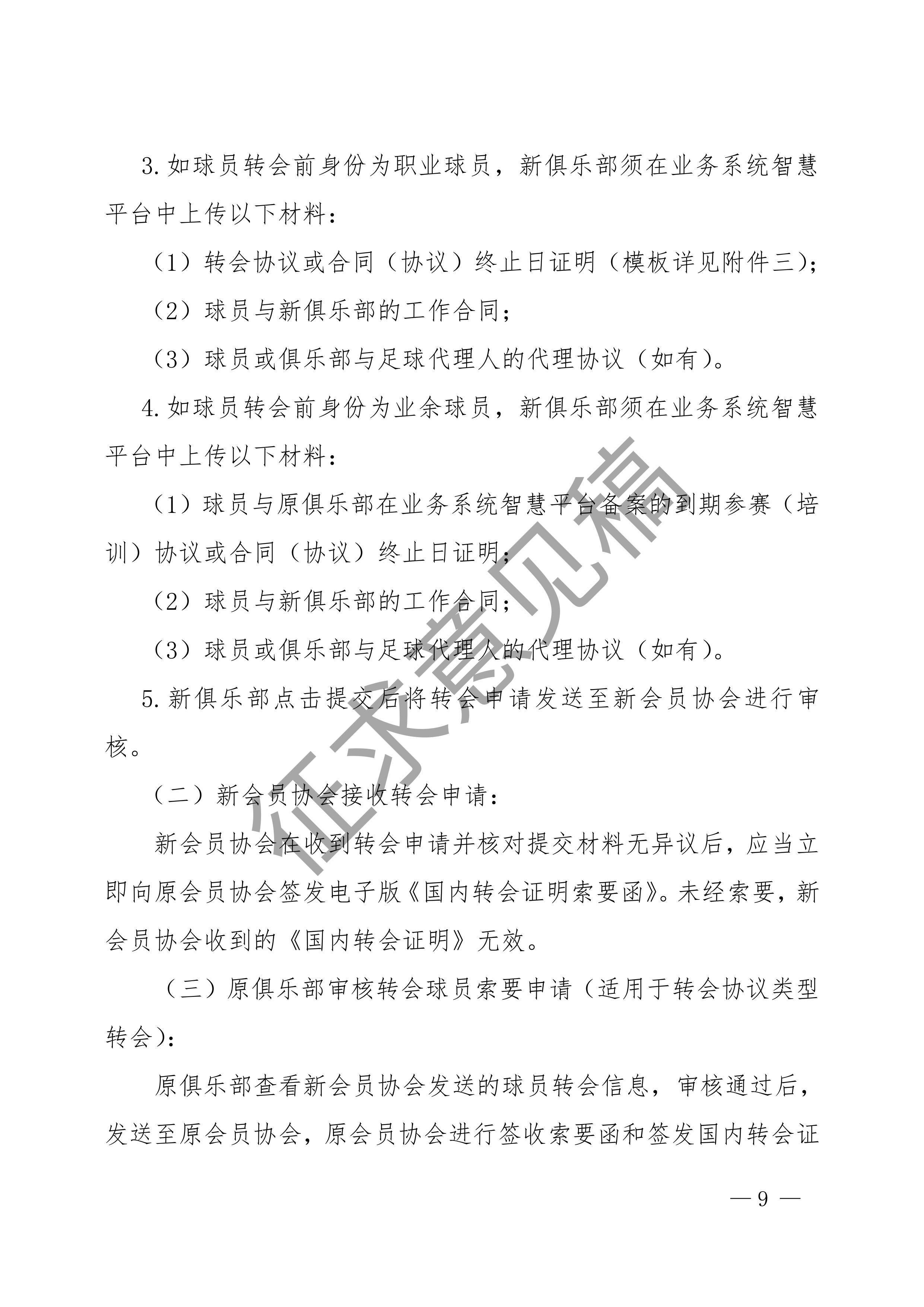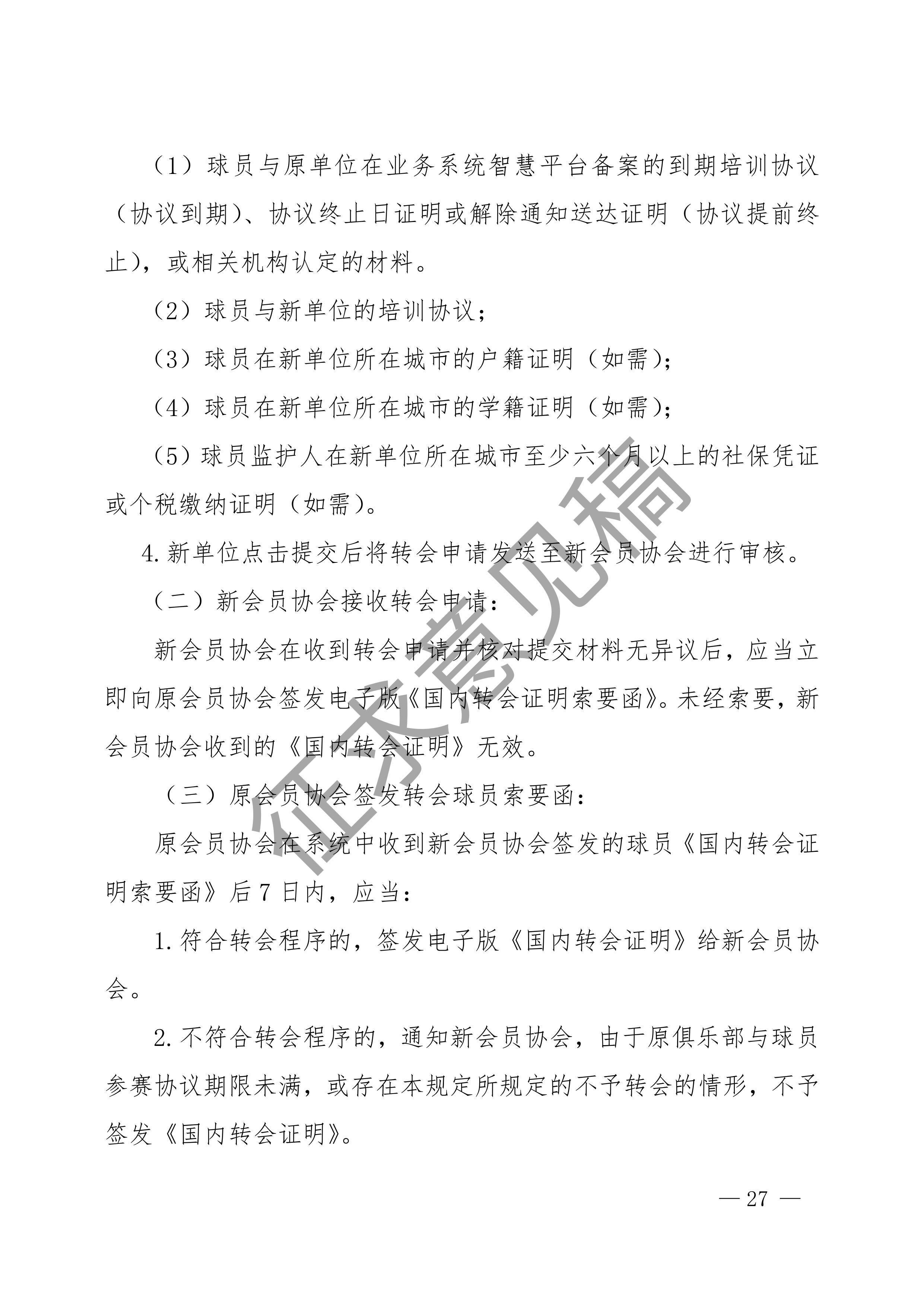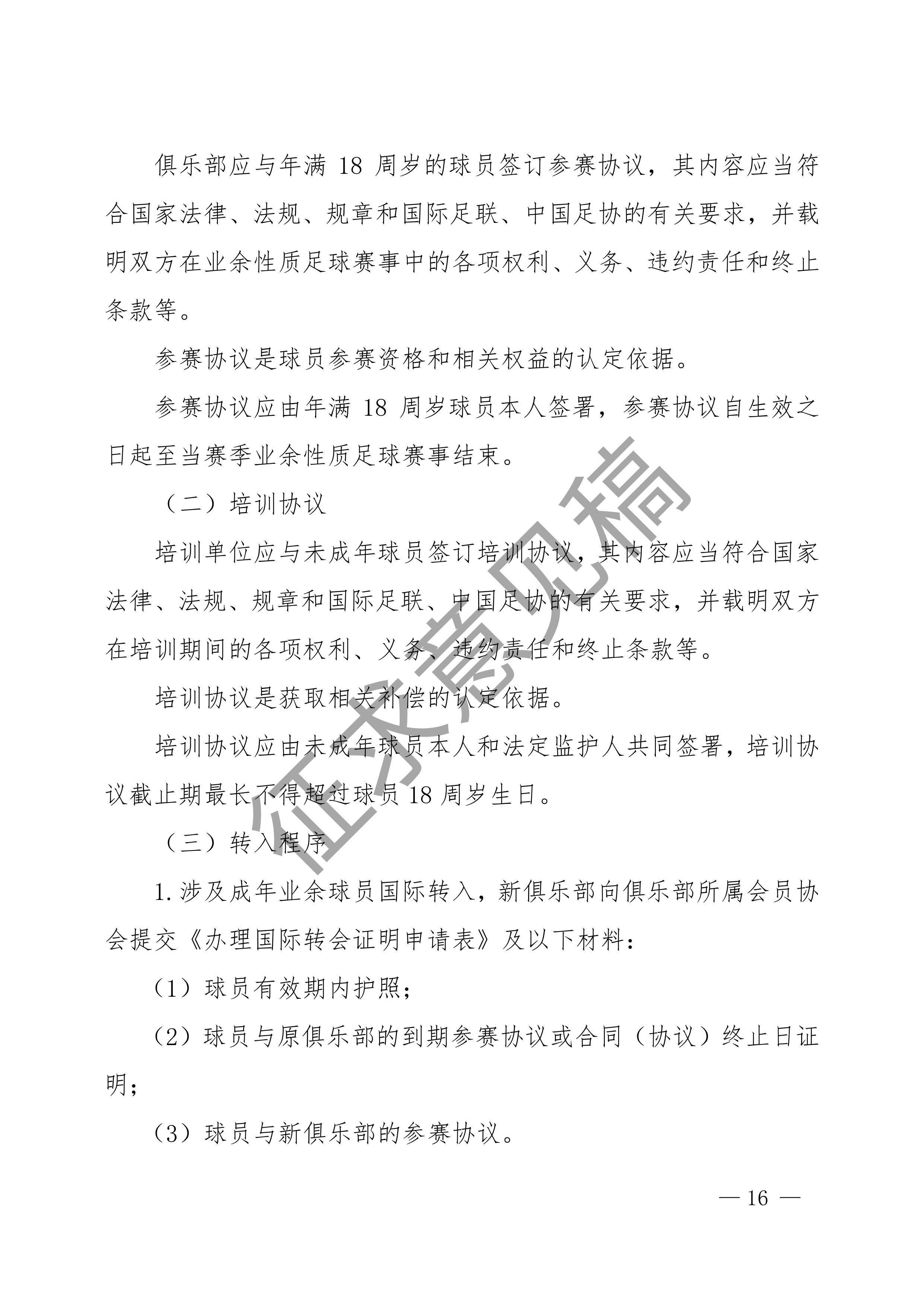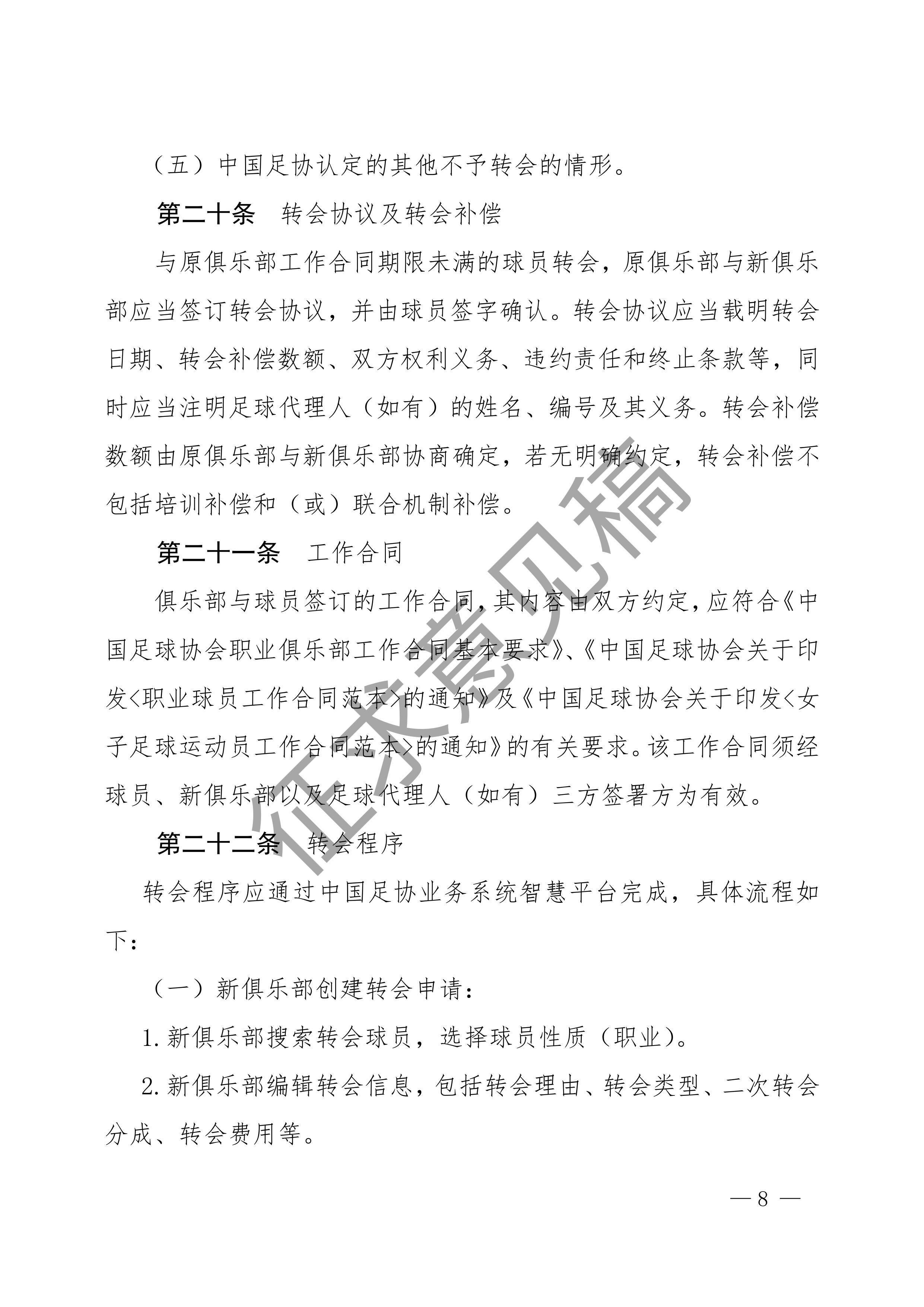 為進(jìn)一步規(guī)范我國(guó)球員身份與轉(zhuǎn)會(huì)管理工作,推動(dòng)球員身份認(rèn)定與轉(zhuǎn)會(huì)流程與國(guó)際足球接軌,根據(jù)最近版《國(guó)際足聯(lián)球員身份與轉(zhuǎn)會(huì)規(guī)定》,中國(guó)足球協(xié)會(huì)起草了新版本《中國(guó)足球協(xié)會(huì)球員身份與轉(zhuǎn)會(huì)管理規(guī)定(征求意見(jiàn)稿)》。