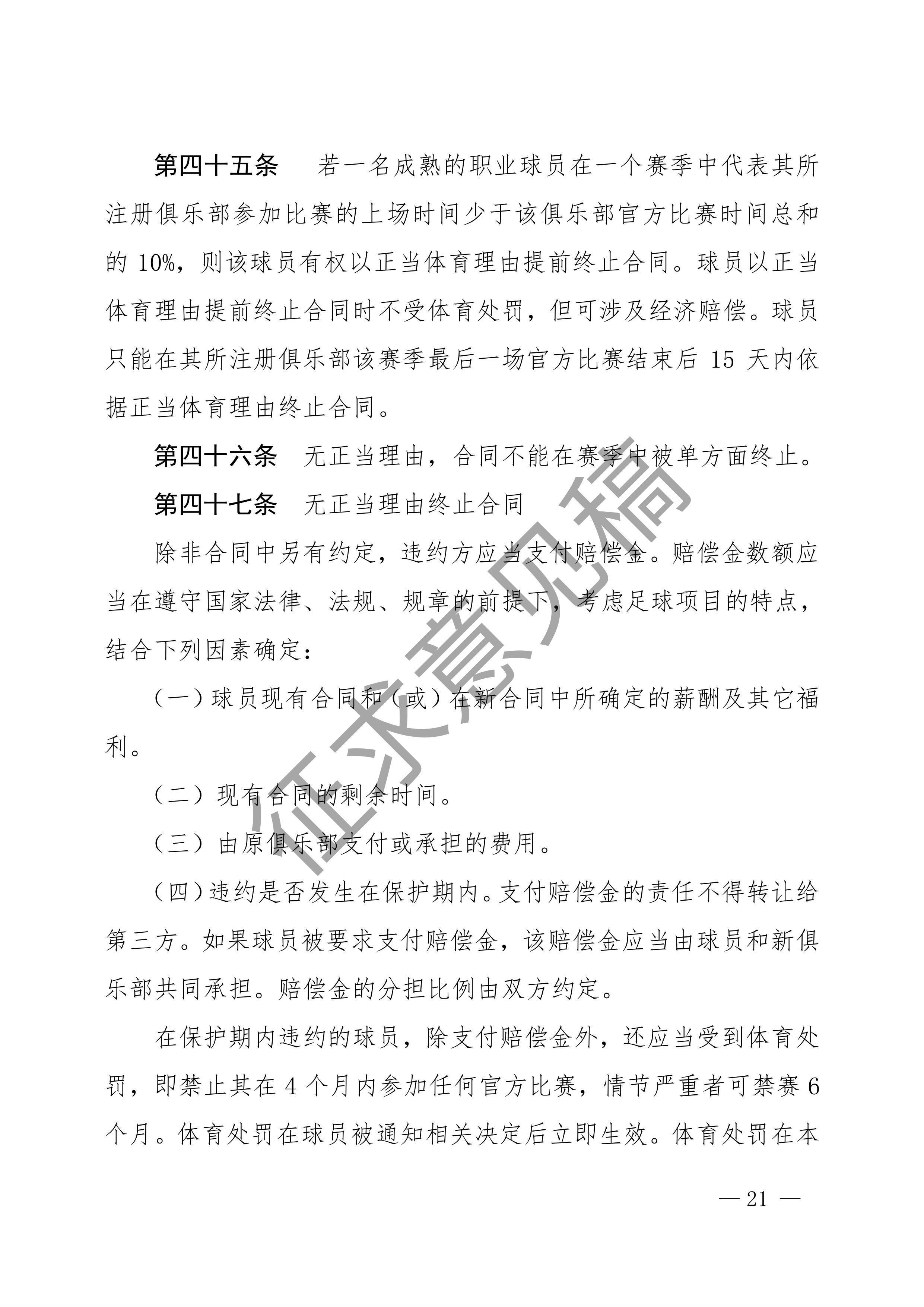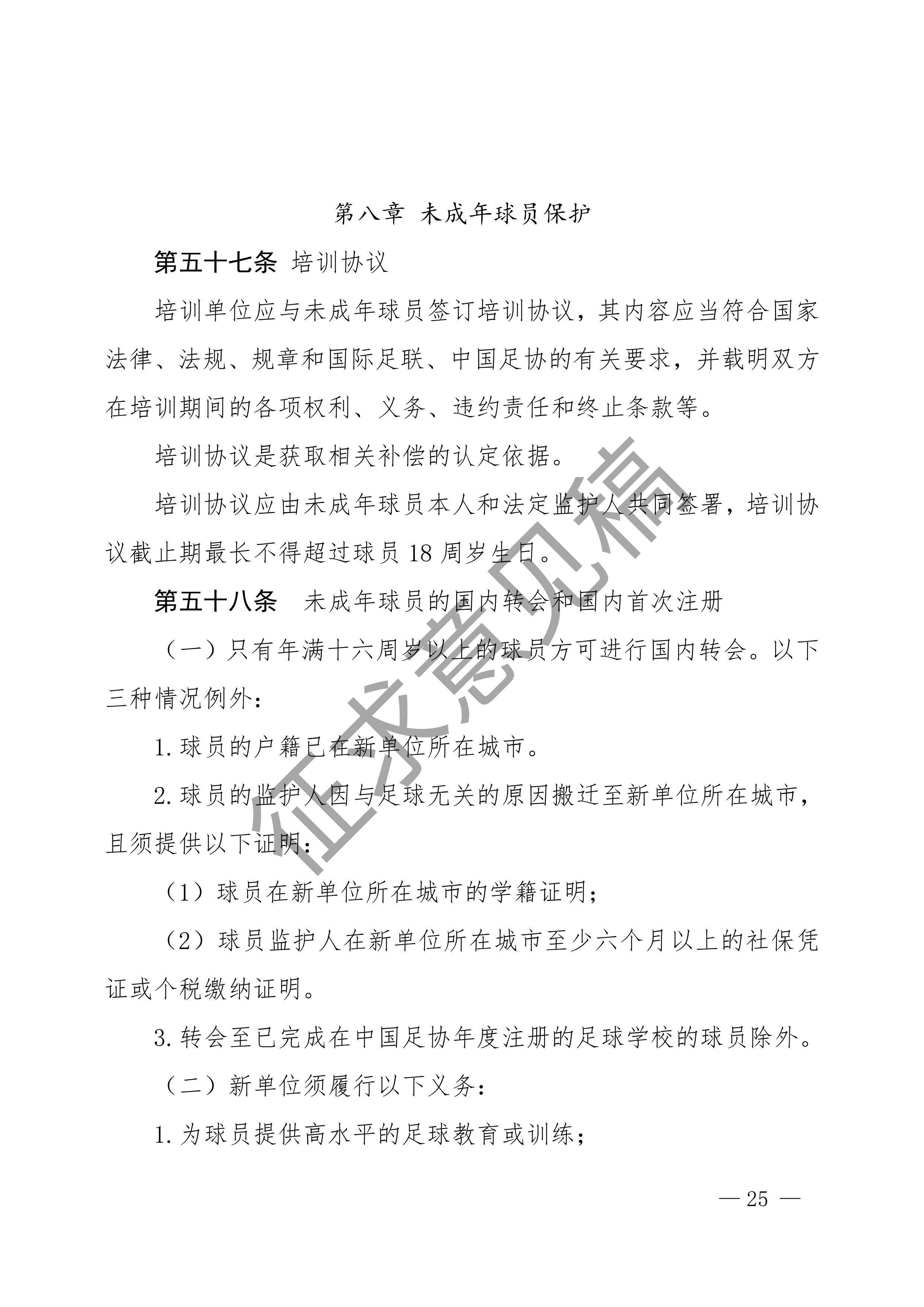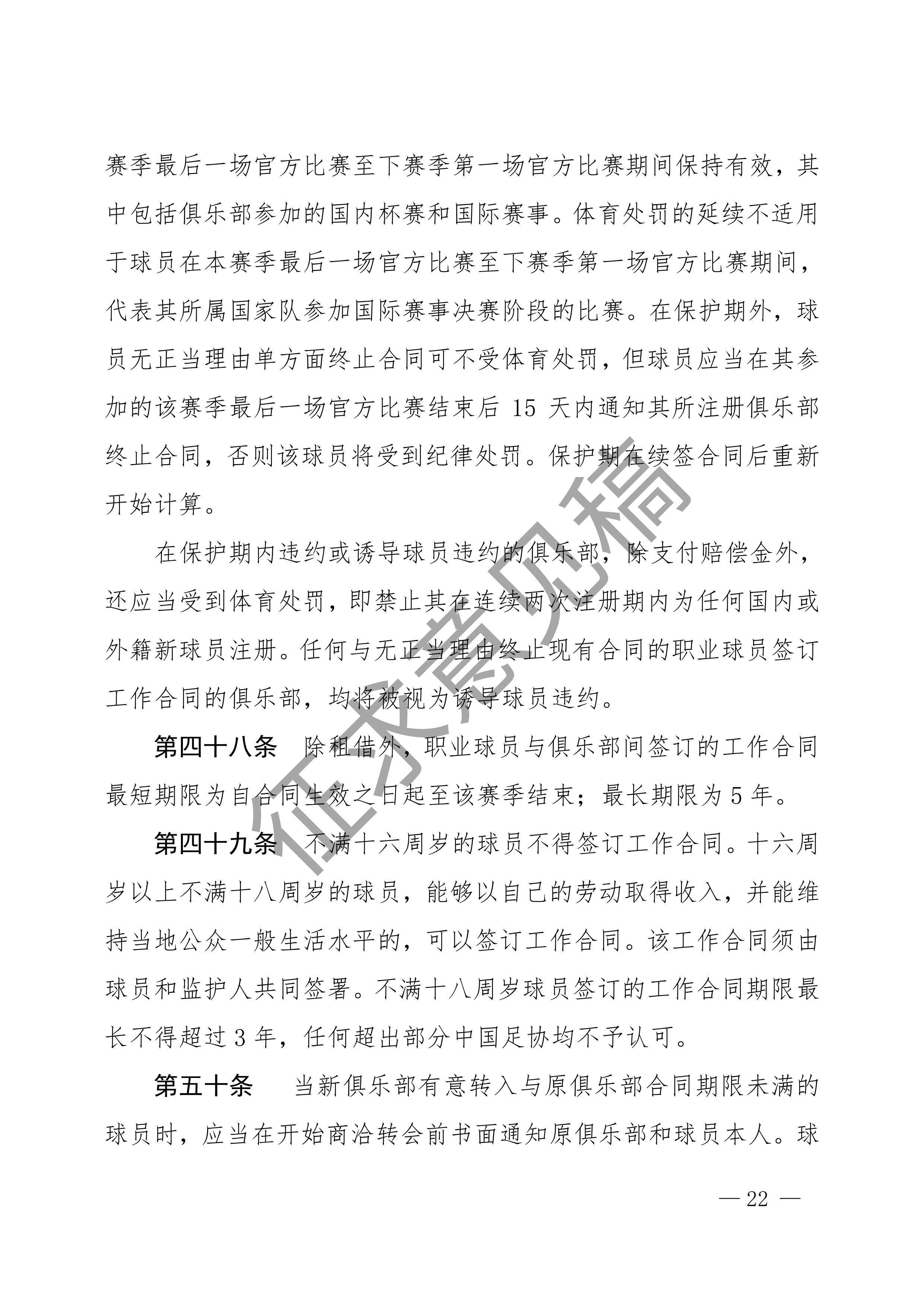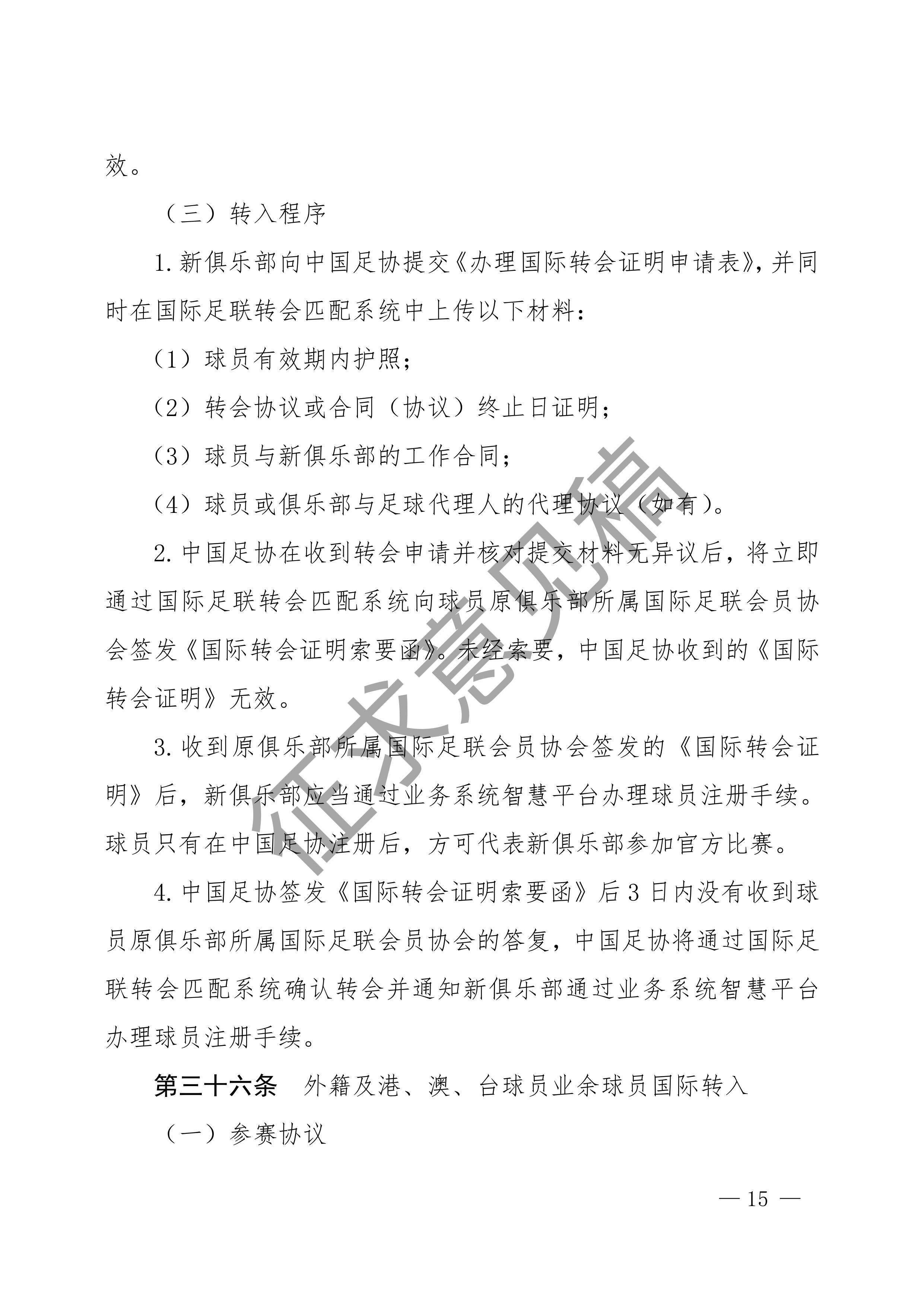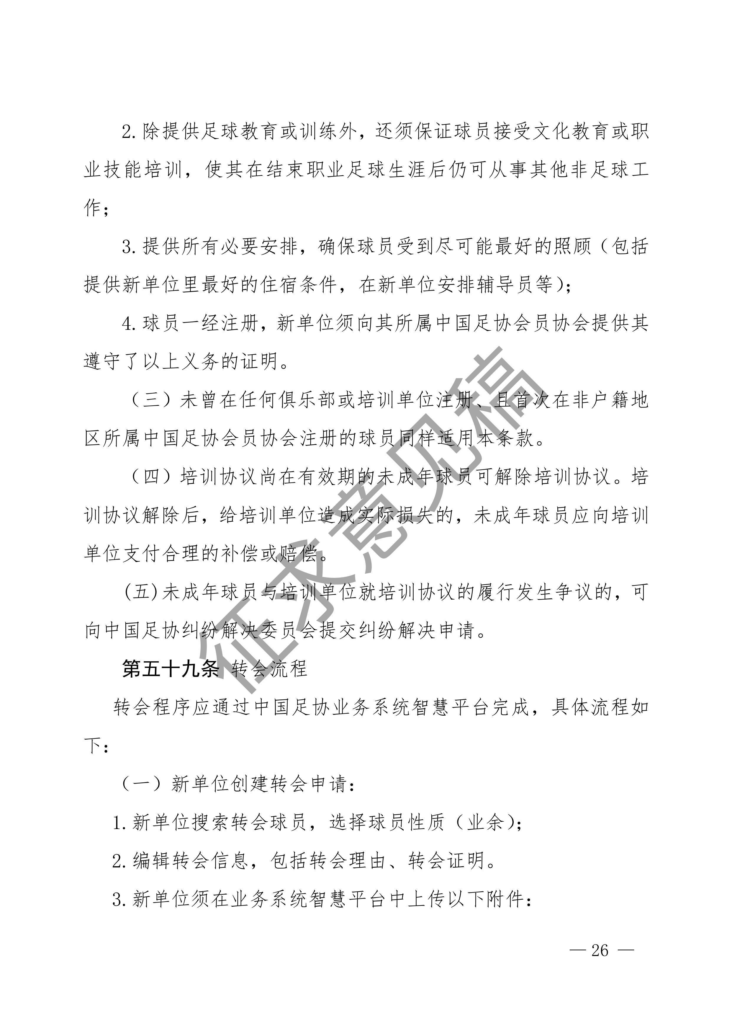 為進(jìn)一步規(guī)范我國(guó)球員身份與轉(zhuǎn)會(huì)管理工作,推動(dòng)球員身份認(rèn)定與轉(zhuǎn)會(huì)流程與國(guó)際足球接軌,根據(jù)最近版《國(guó)際足聯(lián)球員身份與轉(zhuǎn)會(huì)規(guī)定》,中國(guó)足球協(xié)會(huì)起草了新版本《中國(guó)足球協(xié)會(huì)球員身份與轉(zhuǎn)會(huì)管理規(guī)定(征求意見(jiàn)稿)》。