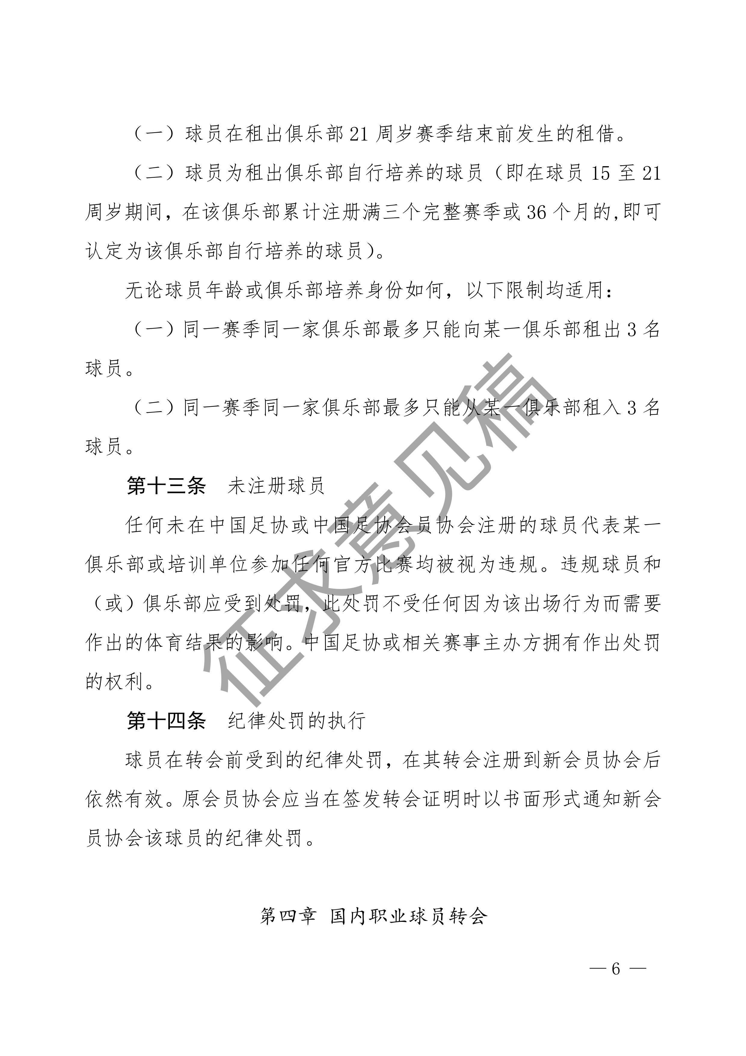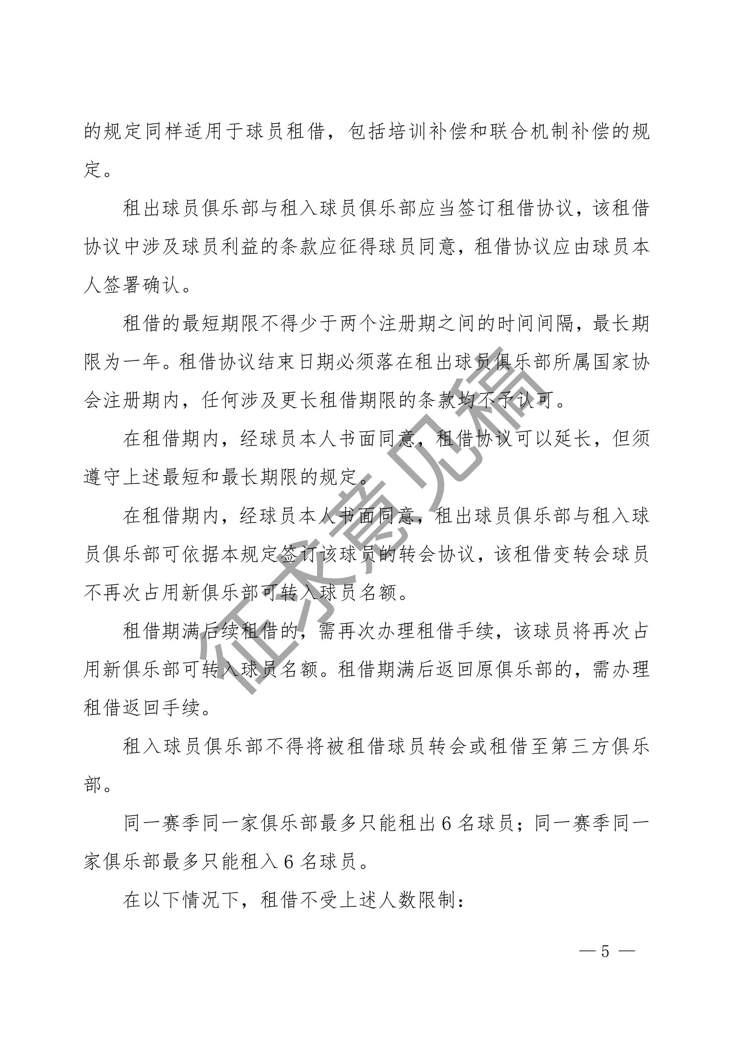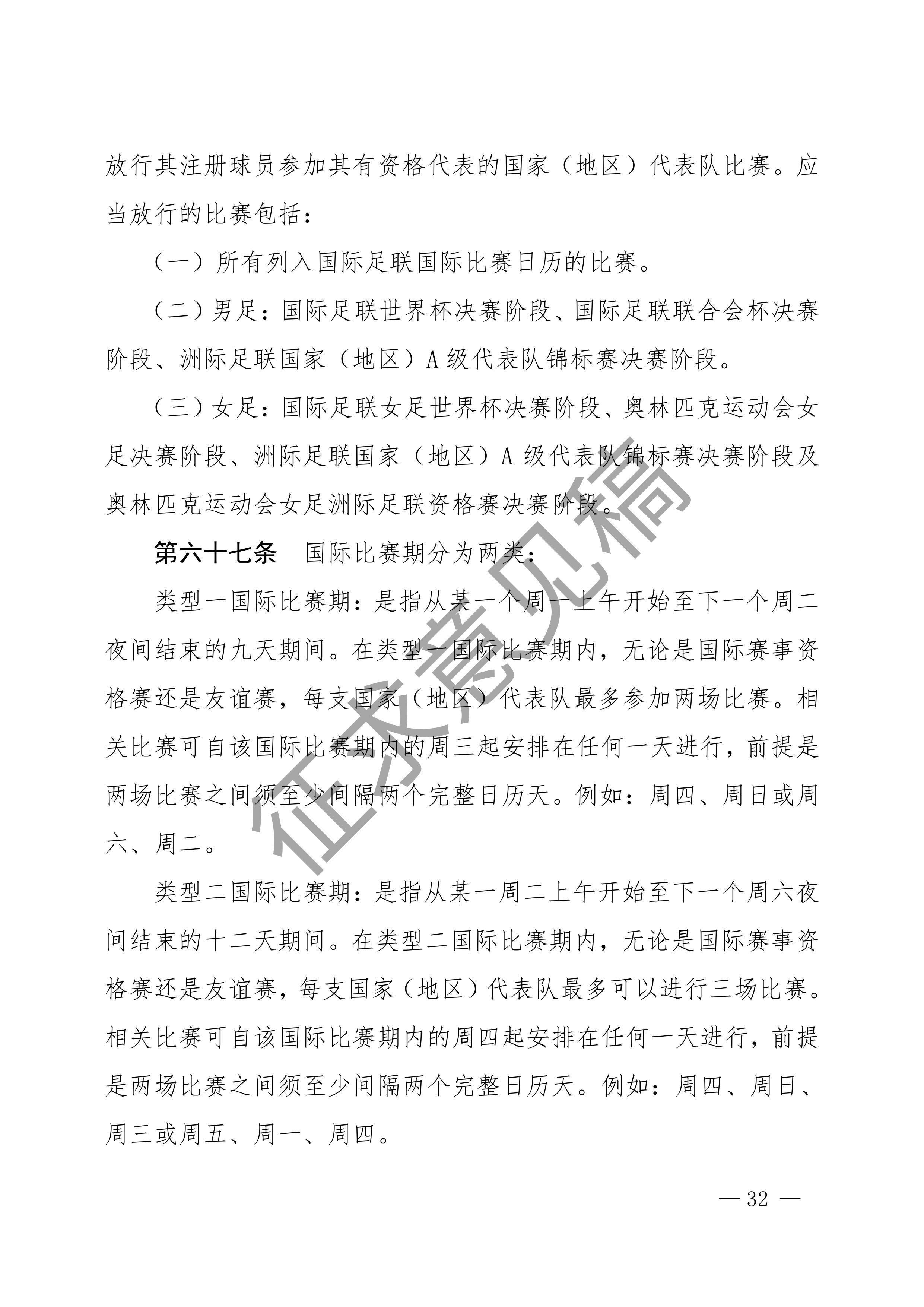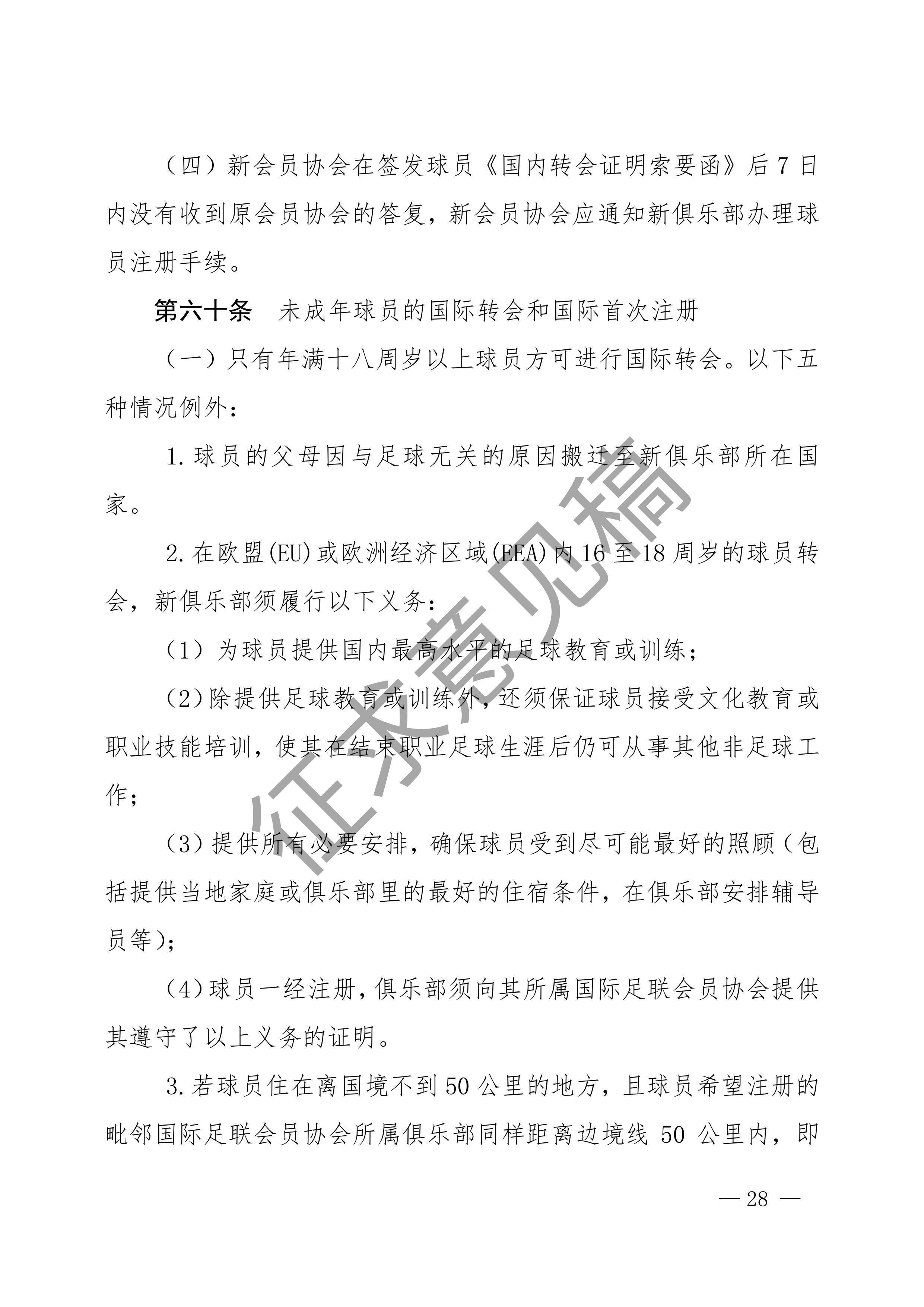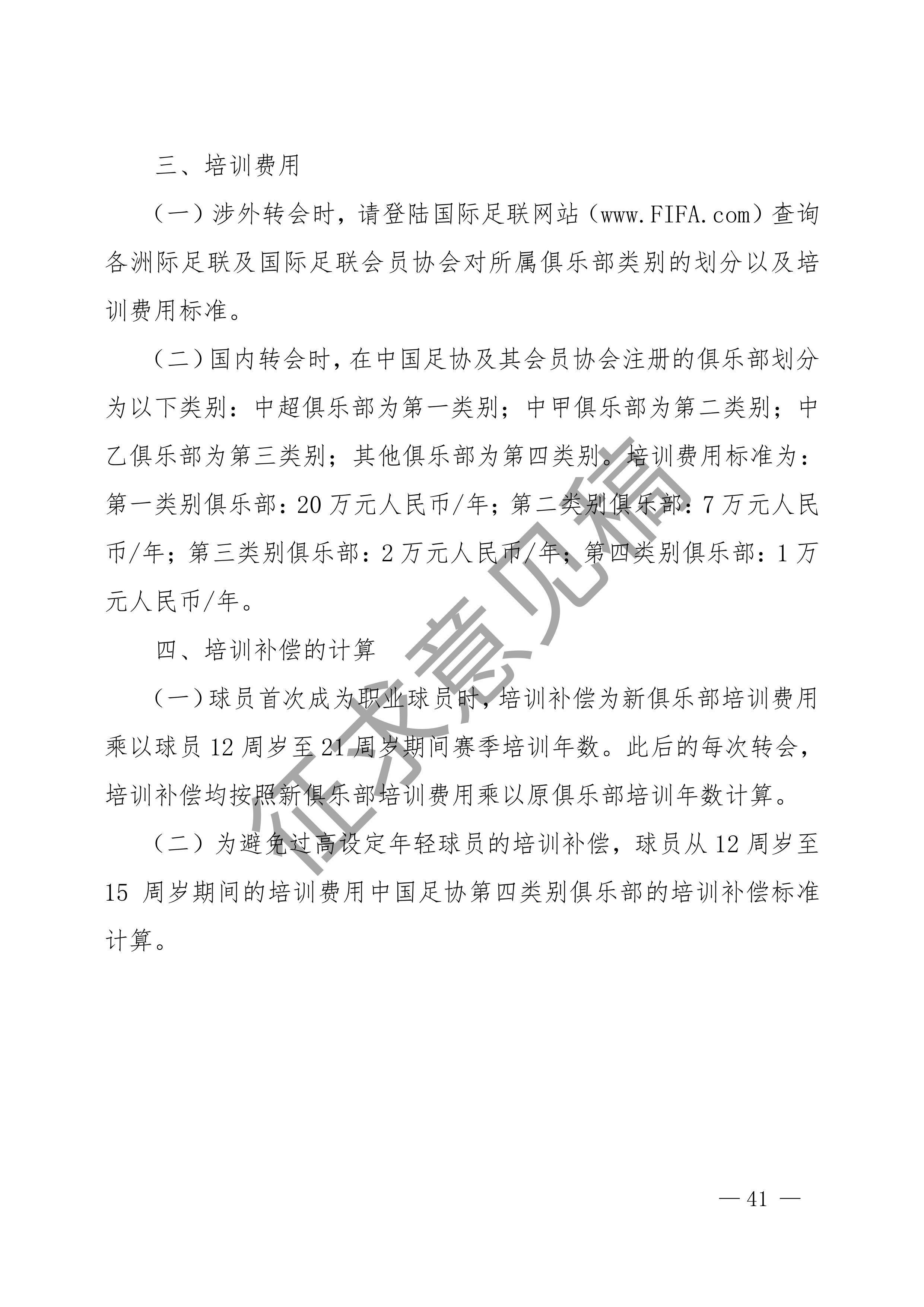 中國(guó)足球協(xié)會(huì)球員身份與轉(zhuǎn)會(huì)管理規(guī)定征求意見(jiàn)稿
